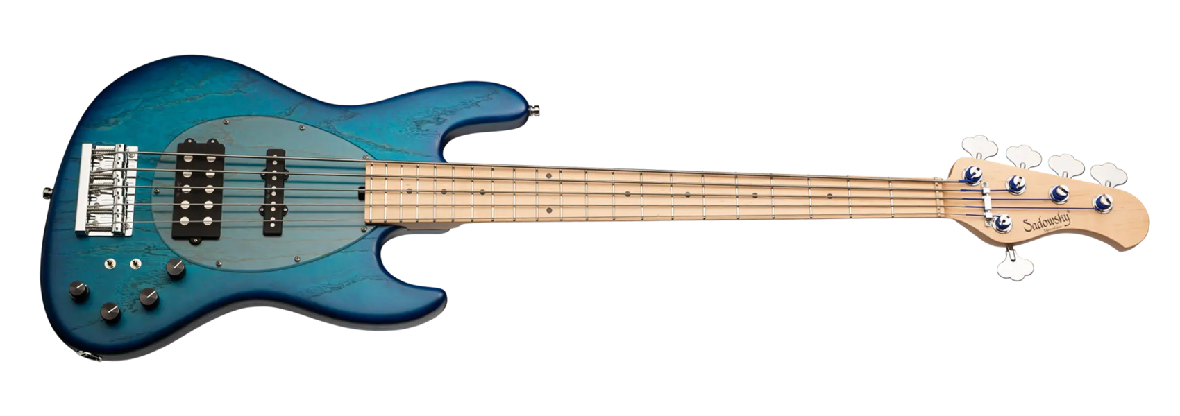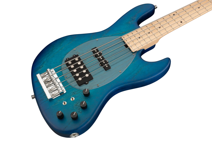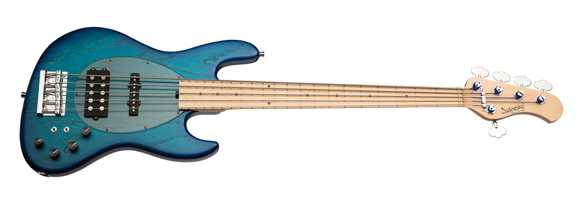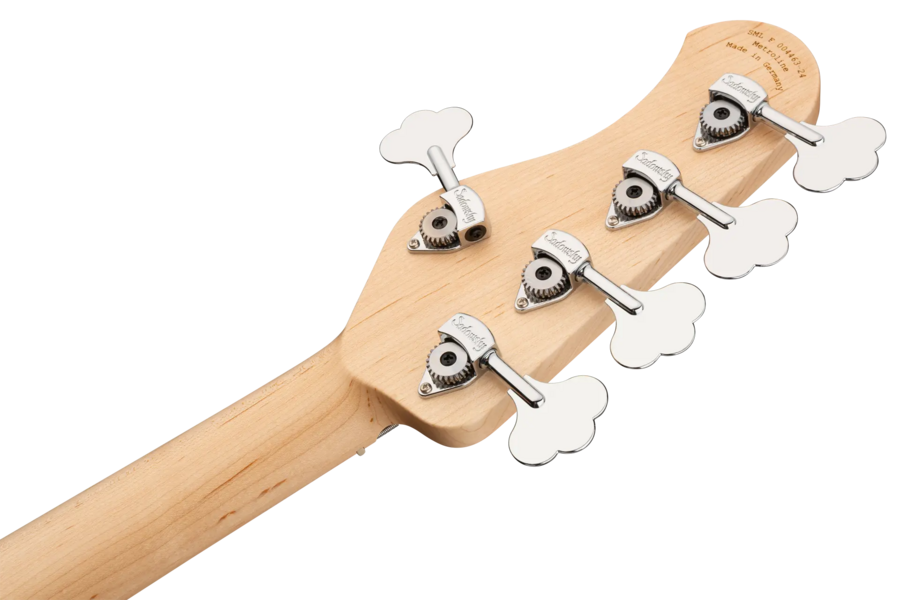 Roger Sadowsky hat es sich zur Aufgabe gemacht, ein bereits sehr erfolgreiches Bass-Design noch weiter zu verbessern, indem er eine Reihe von Detailveränderungen vornahm. Mit der von ihm entwickelten Elektronik hat er es geschafft, den bekannten M/J-Bass-Sound auf ein neues Level zu heben, so dass man heute von einem typischen Sadowsky Tone sprechen kann: Niemals harsch klingend, mit tiefen, definierten, keinesfalls dumpfen Bässen, präsenten, jedoch nicht aufdringlichen Mitten sowie süßen und luftigen Höhen. Dieser 5-saitige Bass, hier in einer Bora Blue Burst Transparent Satin Lackierung, hat einen leichten, verkleinerten J-Style Korpus (chambered), der aus amerikanischer Sumpfesche gefertigt ist. Der Hals ist aus amerikanischem Ahorn und hat ein Griffbrett aus amerikanischem Ahorn. Besondere Merkmale dieses Basses sind Sadowsky M und J Pickups, aktive Elektronik mit True Bypass, Vintage Tone Control, Treble und Bass Boost und zwei 3-Wege-Kippschalter für Pickup-Konfiguration (Seriell / Parallel / Single Coil). Dieser Bass verfügt außerdem über leichte, offene Sadowsky-Mechaniken und die Sadowsky Quick String Release Bridge. Sadowsky MetroLine 21-Fret Vintage M/J Bässe werden ausschließlich in Deutschland hergestellt. Das Gewicht eines Basses beträgt nie mehr als 4,0 kg und ist damit auch für Bassisten interessant, die neben einem modernen Bass-Sound auch eine leichtgewichtige Lösung für die Bühne suchen.