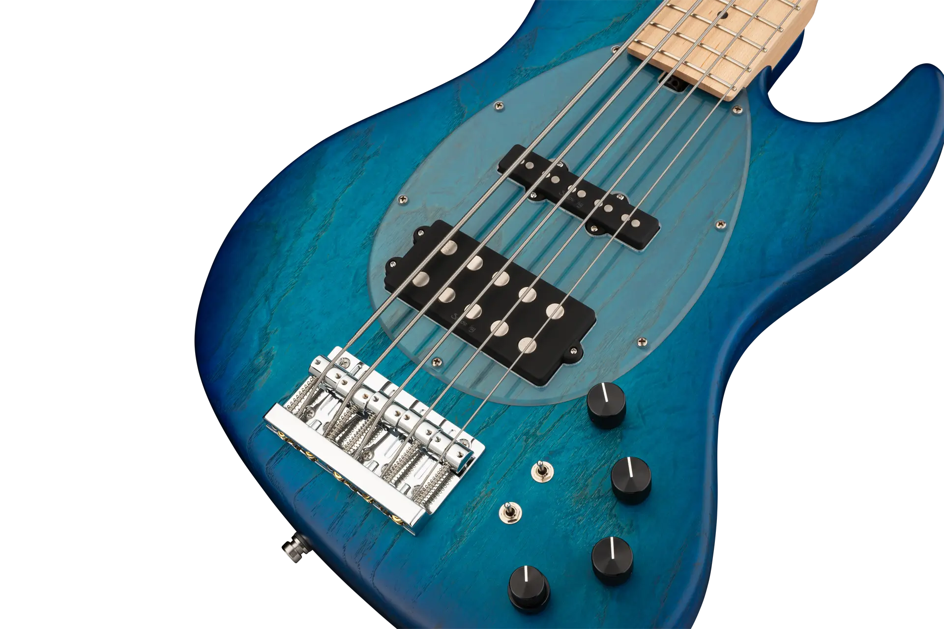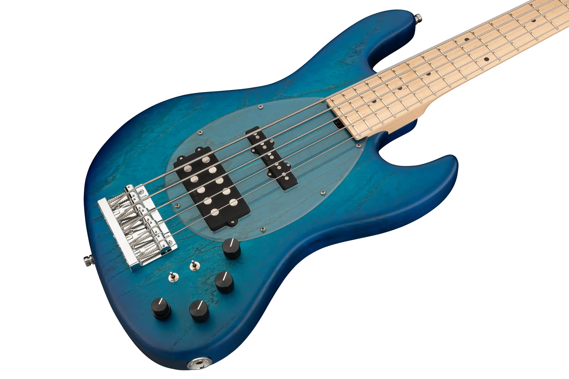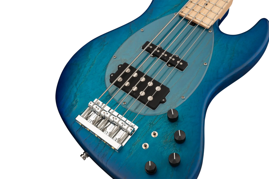 Roger Sadowsky hat es sich zur Aufgabe gemacht, ein bereits sehr erfolgreiches Bass-Design noch weiter zu verbessern, indem er eine Reihe von Detailveränderungen vornahm. Mit der von ihm entwickelten Elektronik hat er es geschafft, den bekannten M/J-Bass-Sound auf ein neues Level zu heben, so dass man heute von einem typischen Sadowsky Tone sprechen kann: Niemals harsch klingend, mit tiefen, definierten, keinesfalls dumpfen Bässen, präsenten, jedoch nicht aufdringlichen Mitten sowie süßen und luftigen Höhen. Dieser 5-saitige Bass, hier in einer Bora Blue Burst Transparent Satin Lackierung, hat einen leichten, verkleinerten J-Style Korpus (chambered), der aus amerikanischer Sumpfesche gefertigt ist. Der Hals ist aus amerikanischem Ahorn und hat ein Griffbrett aus amerikanischem Ahorn. Besondere Merkmale dieses Basses sind Sadowsky M und J Pickups, aktive Elektronik mit True Bypass, Vintage Tone Control, Treble und Bass Boost und zwei 3-Wege-Kippschalter für Pickup-Konfiguration (Seriell / Parallel / Single Coil). Dieser Bass verfügt außerdem über leichte, offene Sadowsky-Mechaniken und die Sadowsky Quick String Release Bridge. Sadowsky MetroLine 21-Fret Vintage M/J Bässe werden ausschließlich in Deutschland hergestellt. Das Gewicht eines Basses beträgt nie mehr als 4,0 kg und ist damit auch für Bassisten interessant, die neben einem modernen Bass-Sound auch eine leichtgewichtige Lösung für die Bühne suchen.