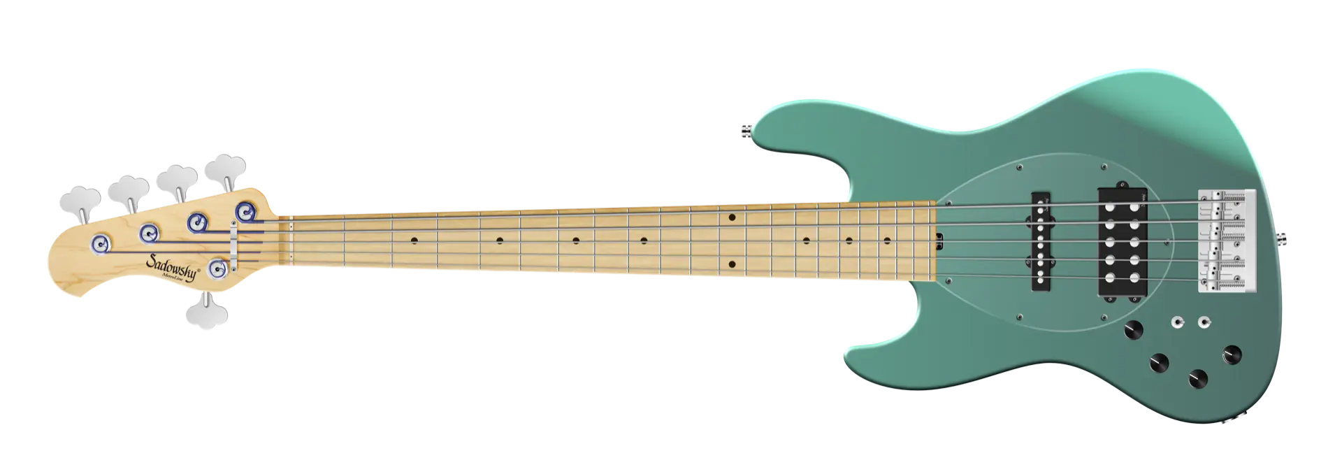 Roger Sadowsky hat es sich zur Aufgabe gemacht, ein bereits sehr erfolgreiches Bass-Design noch weiter zu verbessern, indem er eine Reihe von Detailveränderungen vornahm. Mit der von ihm entwickelten Elektronik hat er es geschafft, den bekannten M/J-Bass-Sound auf ein neues Level zu heben, so dass man heute von einem typischen Sadowsky Tone sprechen kann: Niemals harsch klingend, mit tiefen, definierten, keinesfalls dumpfen Bässen, präsenten, jedoch nicht aufdringlichen Mitten sowie süßen und luftigen Höhen. Dieser 5-saitige Linkshänder-Bass, hier in einer Solid Sage Green Metallic Satin Lackierung, hat einen leichten, verkleinerten J-Style Korpus (chambered), der aus amerikanischer Sumpfesche gefertigt ist. Der Hals ist aus amerikanischem Ahorn und hat ein Griffbrett aus amerikanischem Ahorn. Besondere Merkmale dieses Basses sind Sadowsky M und J Pickups, aktive Elektronik mit True Bypass, Vintage Tone Control, Treble und Bass Boost und zwei 3-Wege-Kippschalter für Pickup-Konfiguration (Seriell / Parallel / Single Coil). Dieser Bass verfügt außerdem über leichte, offene Sadowsky-Mechaniken und die Sadowsky Quick String Release Bridge. Sadowsky MetroLine 21-Fret Vintage M/J Bässe werden ausschließlich in Deutschland hergestellt. Das Gewicht eines Basses beträgt nie mehr als 4,0 kg und ist damit auch für Bassisten interessant, die neben einem modernen Bass-Sound auch eine leichtgewichtige Lösung für die Bühne suchen.