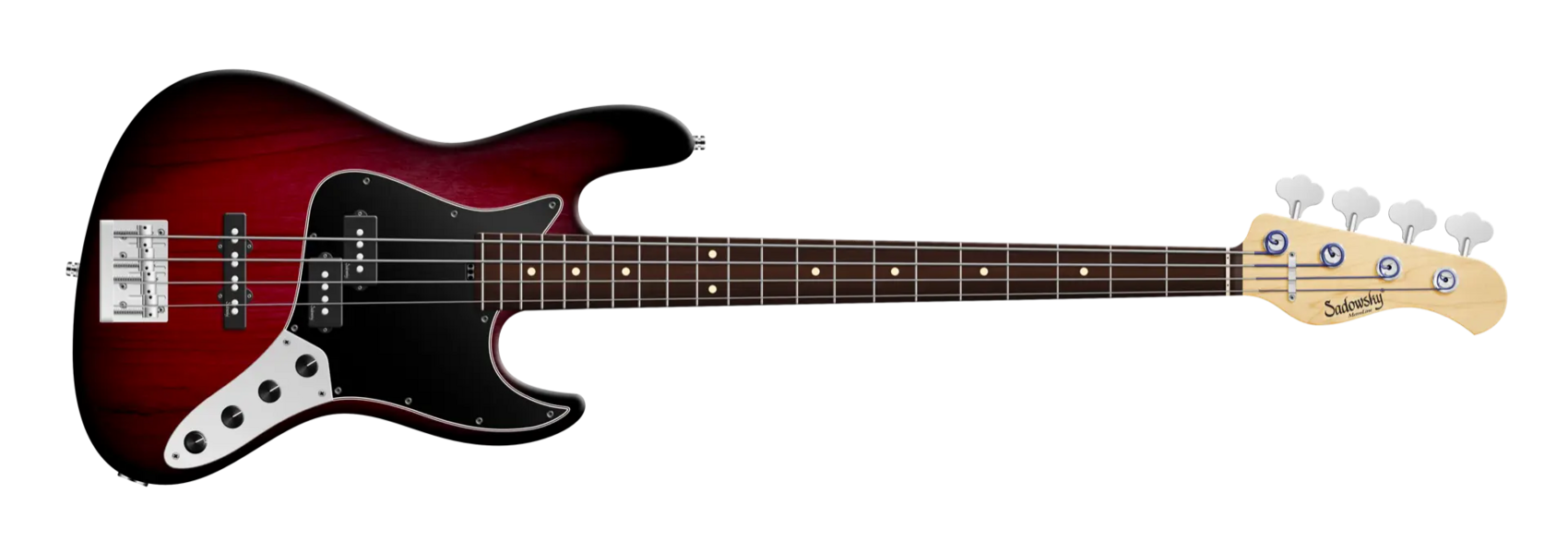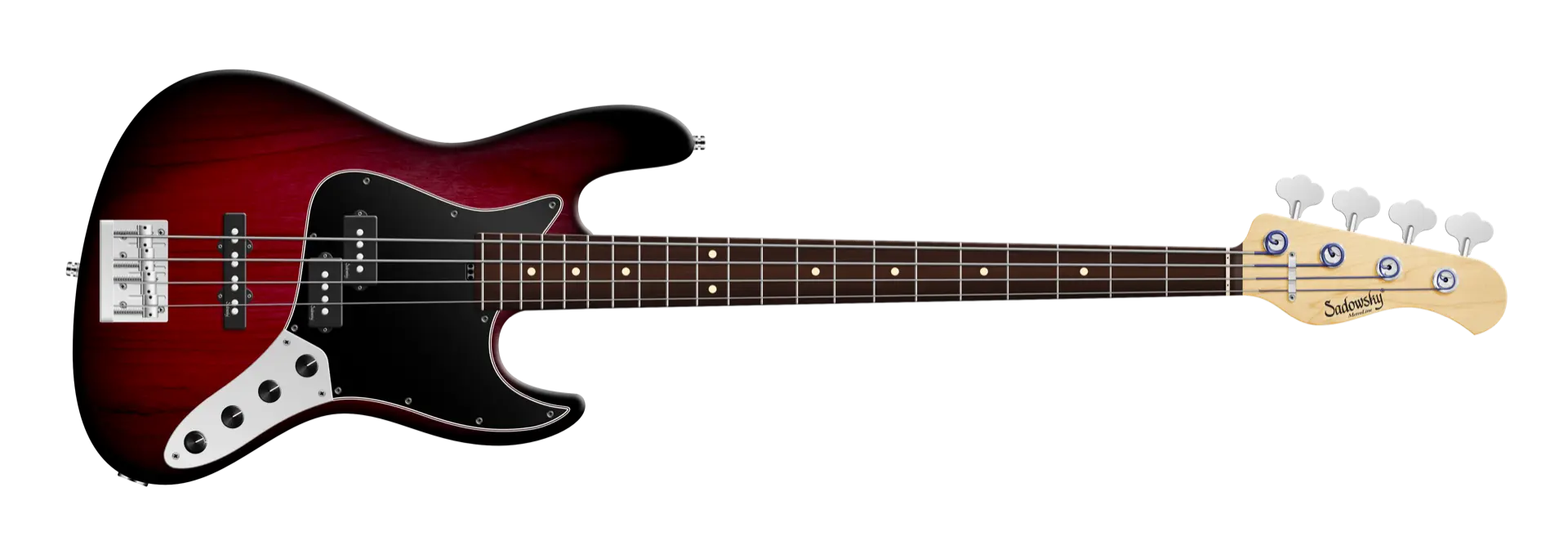 Roger Sadowsky hat es sich immer zum Ziel gesetzt, das Design eines Basses durch eine Reihe von spezifischen und integralen Änderungen zu verbessern. Durch den Bau seiner eigenen Elektronik gelang es Roger, den Klang eines traditionellen P/J-Basses mit dem speziellen Sadowsky-Ton zu verbessern: Niemals harsch oder schrill. Starker, kraftvoller Bass, der nie matschig ist. Präsente, aber nicht zu aggressive Mitten und ein süßer und luftiger Höhenbereich. Dieser 4-saitige P/J-Bass hat einen schlanken, unterdimensionierten J-Style-Korpus (chambered) aus amerikanischer Roterle, der mit einem Burgundy Blackburst Transparent Satin-Finish lackiert ist. Der Hals ist aus amerikanischem Ahorn gefertigt und mit einem Morado (Pau Ferro) Griffbrett ausgestattet. Zu den besonderen Merkmalen dieses Basses gehören ein Sadowsky P-Style Hals-Tonabnehmer und ein J-Style Steg-Tonabnehmer, eine aktive Elektronik mit True Bypass, Vintage Tone Control, Treble und Bass Boost. Die Hardware umfasst leichte Sadowsky Open Gear Mechaniken und eine Sadowsky Quick String Release Bridge. Der Sadowsky MetroLine 21-Fret Vintage P/J Bass wird ausschließlich in Deutschland hergestellt und wird nie mehr als 4,0 kg wiegen. Er ist eine gute Wahl für Spieler, die einen leichten Bass mit einem modernen P/J-Bass-Sound suchen.