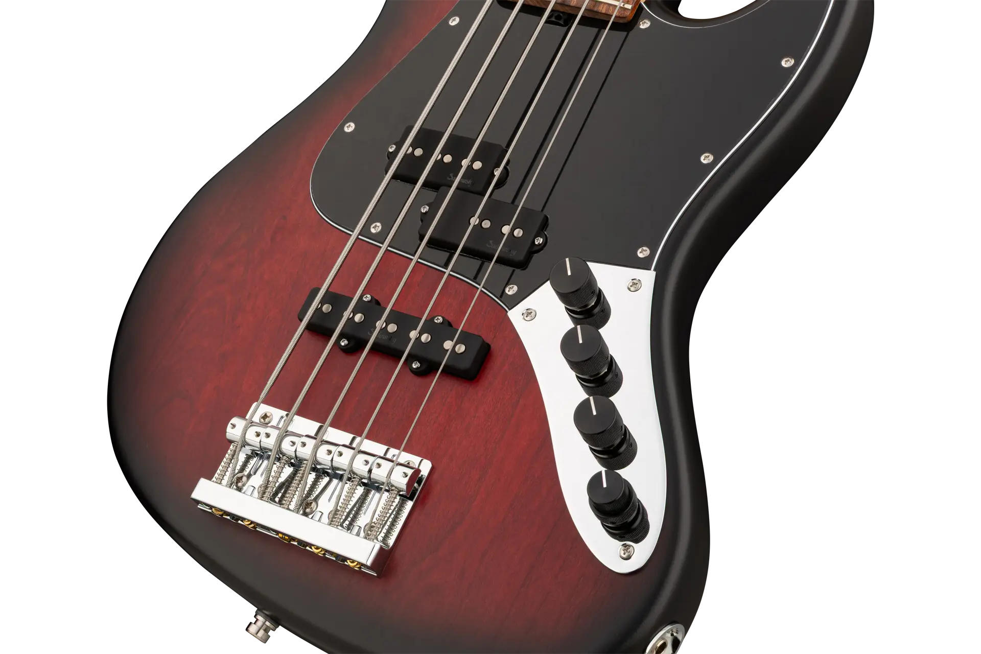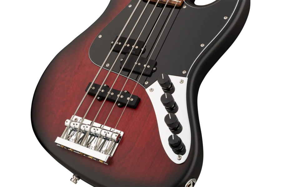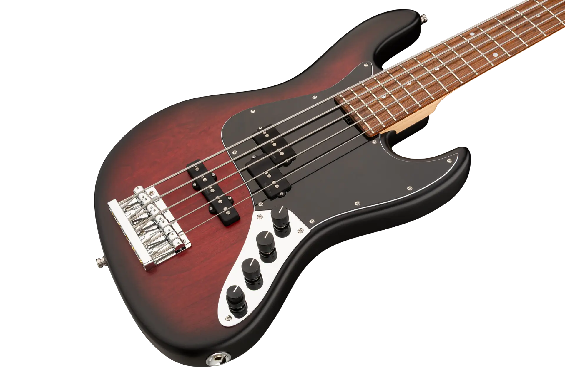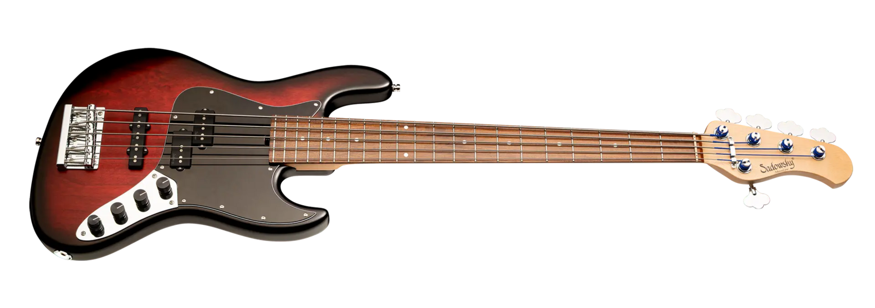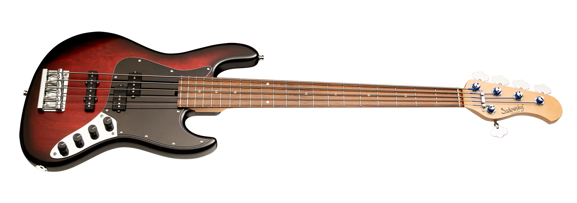 Roger Sadowsky hat es sich immer zum Ziel gesetzt, das Design eines Basses durch eine Reihe von spezifischen und integralen Änderungen zu verbessern. Durch den Bau seiner eigenen Elektronik gelang es Roger, den Klang eines traditionellen P/J-Basses mit dem speziellen Sadowsky-Ton zu verbessern: Niemals harsch oder schrill. Starker, kraftvoller Bass, der nie matschig ist. Präsente, aber nicht zu aggressive Mitten und ein süßer und luftiger Höhenbereich. Dieser 5-saitige P/J-Bass hat einen schlanken, unterdimensionierten J-Style-Korpus (chambered) aus amerikanischer Roterle, der mit einem Burgundy Blackburst Transparent Satin-Finish lackiert ist. Der Hals ist aus amerikanischem Ahorn gefertigt und mit einem Morado (Pau Ferro) Griffbrett ausgestattet. Zu den besonderen Merkmalen dieses Basses gehören ein Sadowsky P-Style Hals-Tonabnehmer und ein J-Style Steg-Tonabnehmer, eine aktive Elektronik mit True Bypass, Vintage Tone Control, Treble und Bass Boost. Die Hardware umfasst leichte Sadowsky Open Gear Mechaniken und eine Sadowsky Quick String Release Bridge. Der Sadowsky MetroLine 21-Fret Vintage P/J Bass wird ausschließlich in Deutschland hergestellt und wird nie mehr als 4,0 kg wiegen. Er ist eine gute Wahl für Spieler, die einen leichten Bass mit einem modernen P/J-Bass-Sound suchen.
