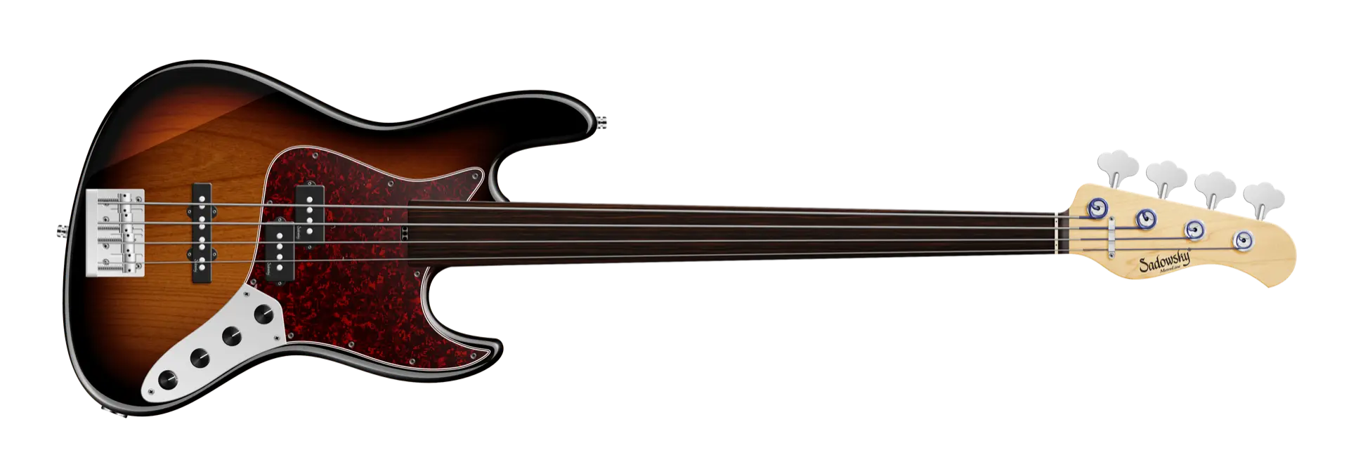 Roger Sadowsky hat es sich immer zum Ziel gesetzt, das Design eines Basses durch eine Reihe von spezifischen und integralen Änderungen zu verbessern. Durch den Bau seiner eigenen Elektronik gelang es Roger, den Klang eines traditionellen P/J-Basses mit dem speziellen Sadowsky-Ton zu verbessern: Niemals harsch oder schrill. Starker, kraftvoller Bass, der nie matschig ist. Präsente, aber nicht zu aggressive Mitten und ein süßer und luftiger Höhenbereich. Dieser 4-saitige Fretless P/J-Bass hat einen schlanken, unterdimensionierten J-Style-Korpus (chambered) aus amerikanischer Roterle, der mit einem '59 Burst Transparent High Polish-Finish lackiert ist. Der Hals ist aus amerikanischem Ahorn gefertigt und mit einem Tigerstripe Ebony Griffbrett ausgestattet. Zu den besonderen Merkmalen dieses Basses gehören ein Sadowsky P-Style Hals-Tonabnehmer und ein J-Style Steg-Tonabnehmer, eine aktive Elektronik mit True Bypass, Vintage Tone Control, Treble und Bass Boost. Die Hardware umfasst leichte Sadowsky Open Gear Mechaniken und eine Sadowsky Quick String Release Bridge. Der Sadowsky MetroLine 21-Fret Vintage P/J Bass wird ausschließlich in Deutschland hergestellt und wird nie mehr als 4,0 kg wiegen. Er ist eine gute Wahl für Spieler, die einen leichten Bass mit einem modernen P/J-Bass-Sound suchen.