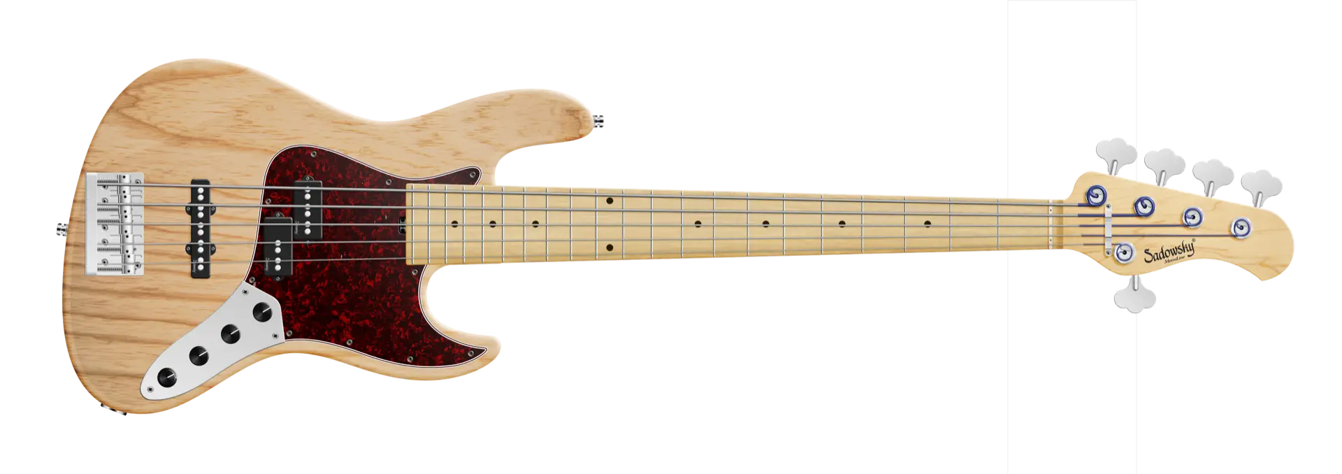 Roger Sadowsky hat es sich immer zum Ziel gesetzt, das Design eines Basses durch eine Reihe von spezifischen und integralen Änderungen zu verbessern. Durch den Bau seiner eigenen Elektronik gelang es Roger, den Klang eines traditionellen P/J-Basses mit dem speziellen Sadowsky-Ton zu verbessern: Niemals harsch oder schrill. Starker, kraftvoller Bass, der nie matschig ist. Präsente, aber nicht zu aggressive Mitten und ein süßer und luftiger Höhenbereich. Dieser 5-saitige P/J-Bass hat einen schlanken, unterdimensionierten J-Style-Korpus (chambered) aus amerikanischer Sumpfesche, der mit einem Natural Transparent Satin-Finish lackiert ist. Der Hals ist aus amerikanischem Ahorn und hat ein Griffbrett aus amerikanischem Ahorn. Zu den besonderen Merkmalen dieses Basses gehören ein Sadowsky P-Style Hals-Tonabnehmer und ein J-Style Steg-Tonabnehmer, eine aktive Elektronik mit True Bypass, Vintage Tone Control, Treble und Bass Boost. Die Hardware umfasst leichte Sadowsky Open Gear Mechaniken und eine Sadowsky Quick String Release Bridge. Der Sadowsky MetroLine 21-Fret Vintage P/J Bass wird ausschließlich in Deutschland hergestellt und wird nie mehr als 4,0 kg wiegen. Er ist eine gute Wahl für Spieler, die einen leichten Bass mit einem modernen P/J-Bass-Sound suchen.