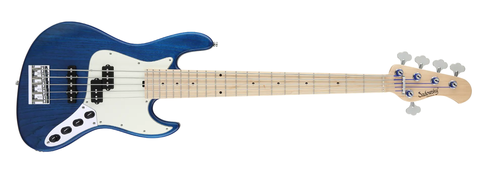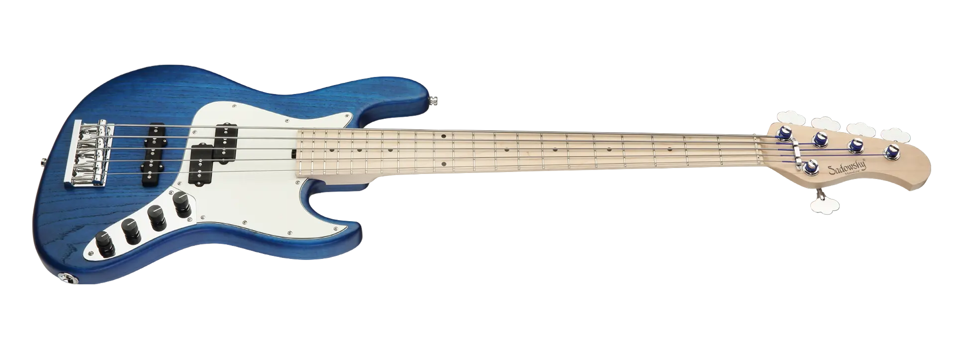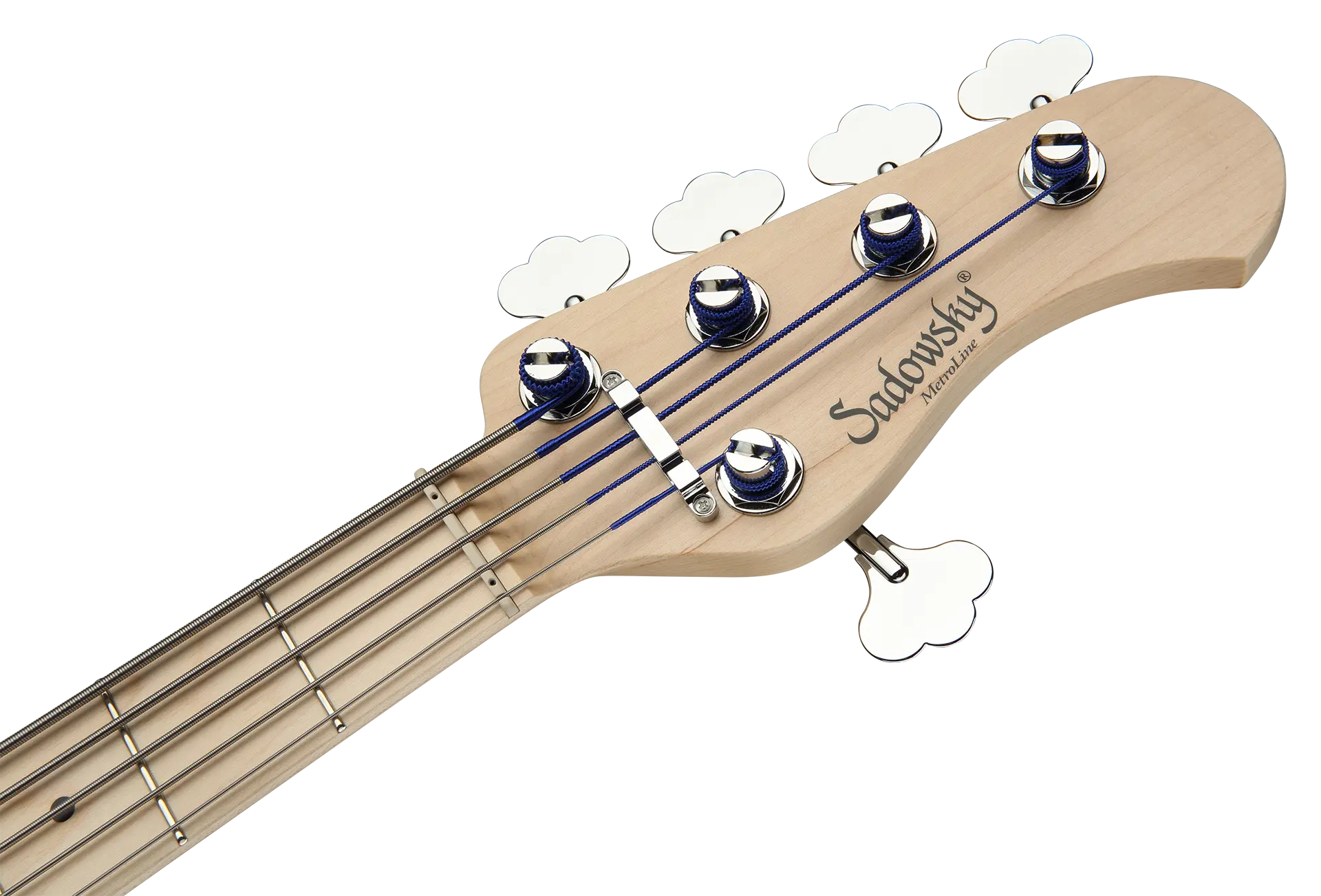 Roger Sadowsky hat es sich immer zum Ziel gesetzt, das Design eines Basses durch eine Reihe von spezifischen und integralen Änderungen zu verbessern. Durch den Bau seiner eigenen Elektronik gelang es Roger, den Klang eines traditionellen P/J-Basses mit dem speziellen Sadowsky-Ton zu verbessern: Niemals harsch oder schrill. Starker, kraftvoller Bass, der nie matschig ist. Präsente, aber nicht zu aggressive Mitten und ein süßer und luftiger Höhenbereich. Dieser 5-saitige P/J-Bass hat einen schlanken, unterdimensionierten J-Style-Korpus (chambered) aus amerikanischer Sumpfesche, der mit einem Ocean Blue Transparent Satin-Finish lackiert ist. Der Hals ist aus amerikanischem Ahorn und hat ein Griffbrett aus amerikanischem Ahorn. Zu den besonderen Merkmalen dieses Basses gehören ein Sadowsky P-Style Hals-Tonabnehmer und ein J-Style Steg-Tonabnehmer, eine aktive Elektronik mit True Bypass, Vintage Tone Control, Treble und Bass Boost. Die Hardware umfasst leichte Sadowsky Open Gear Mechaniken und eine Sadowsky Quick String Release Bridge. Der Sadowsky MetroLine 21-Fret Vintage P/J Bass wird ausschließlich in Deutschland hergestellt und wird nie mehr als 4,0 kg wiegen. Er ist eine gute Wahl für Spieler, die einen leichten Bass mit einem modernen P/J-Bass-Sound suchen.