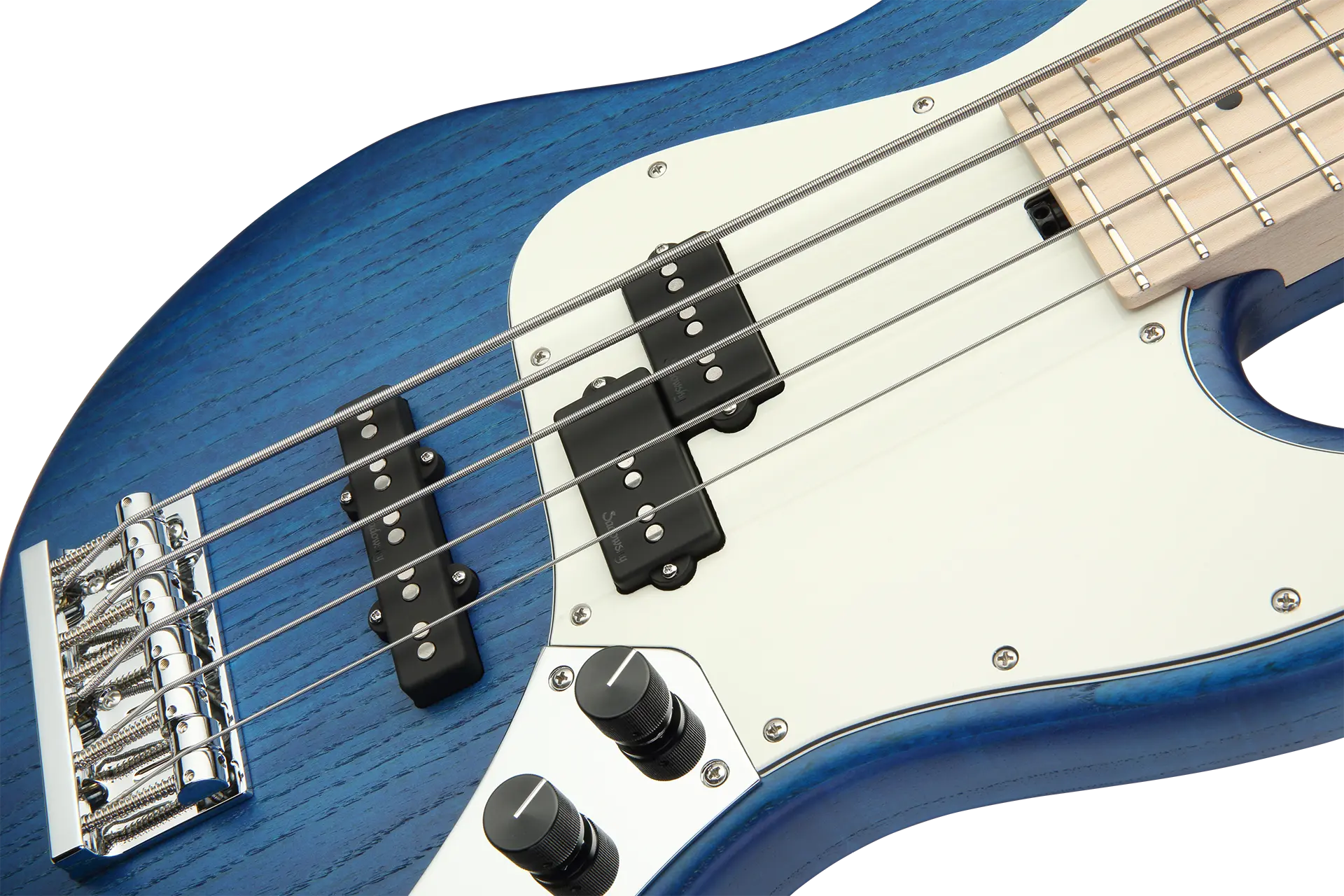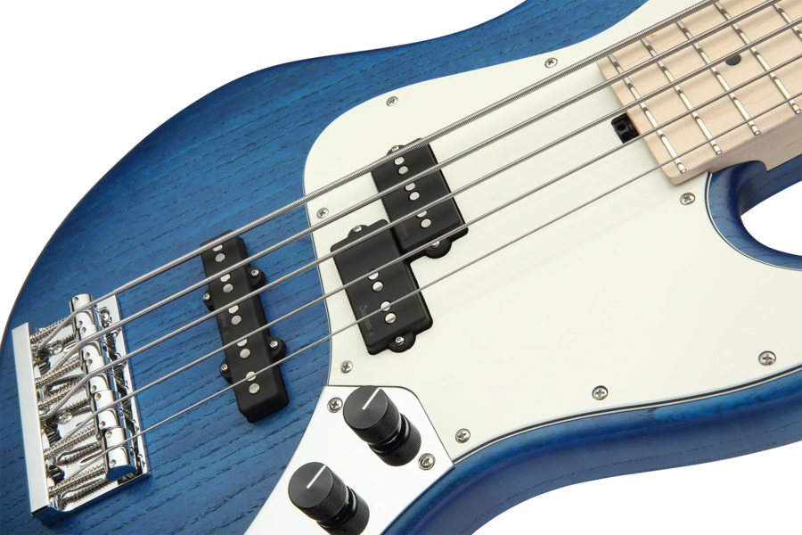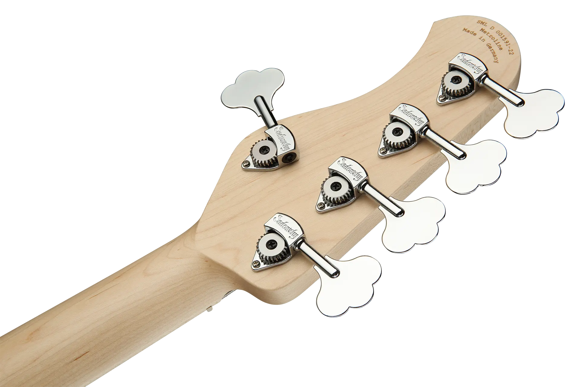 Roger Sadowsky hat es sich immer zum Ziel gesetzt, das Design eines Basses durch eine Reihe von spezifischen und integralen Änderungen zu verbessern. Durch den Bau seiner eigenen Elektronik gelang es Roger, den Klang eines traditionellen P/J-Basses mit dem speziellen Sadowsky-Ton zu verbessern: Niemals harsch oder schrill. Starker, kraftvoller Bass, der nie matschig ist. Präsente, aber nicht zu aggressive Mitten und ein süßer und luftiger Höhenbereich. Dieser 5-saitige P/J-Bass hat einen schlanken, unterdimensionierten J-Style-Korpus (chambered) aus amerikanischer Sumpfesche, der mit einem Ocean Blue Transparent Satin-Finish lackiert ist. Der Hals ist aus amerikanischem Ahorn und hat ein Griffbrett aus amerikanischem Ahorn. Zu den besonderen Merkmalen dieses Basses gehören ein Sadowsky P-Style Hals-Tonabnehmer und ein J-Style Steg-Tonabnehmer, eine aktive Elektronik mit True Bypass, Vintage Tone Control, Treble und Bass Boost. Die Hardware umfasst leichte Sadowsky Open Gear Mechaniken und eine Sadowsky Quick String Release Bridge. Der Sadowsky MetroLine 21-Fret Vintage P/J Bass wird ausschließlich in Deutschland hergestellt und wird nie mehr als 4,0 kg wiegen. Er ist eine gute Wahl für Spieler, die einen leichten Bass mit einem modernen P/J-Bass-Sound suchen.