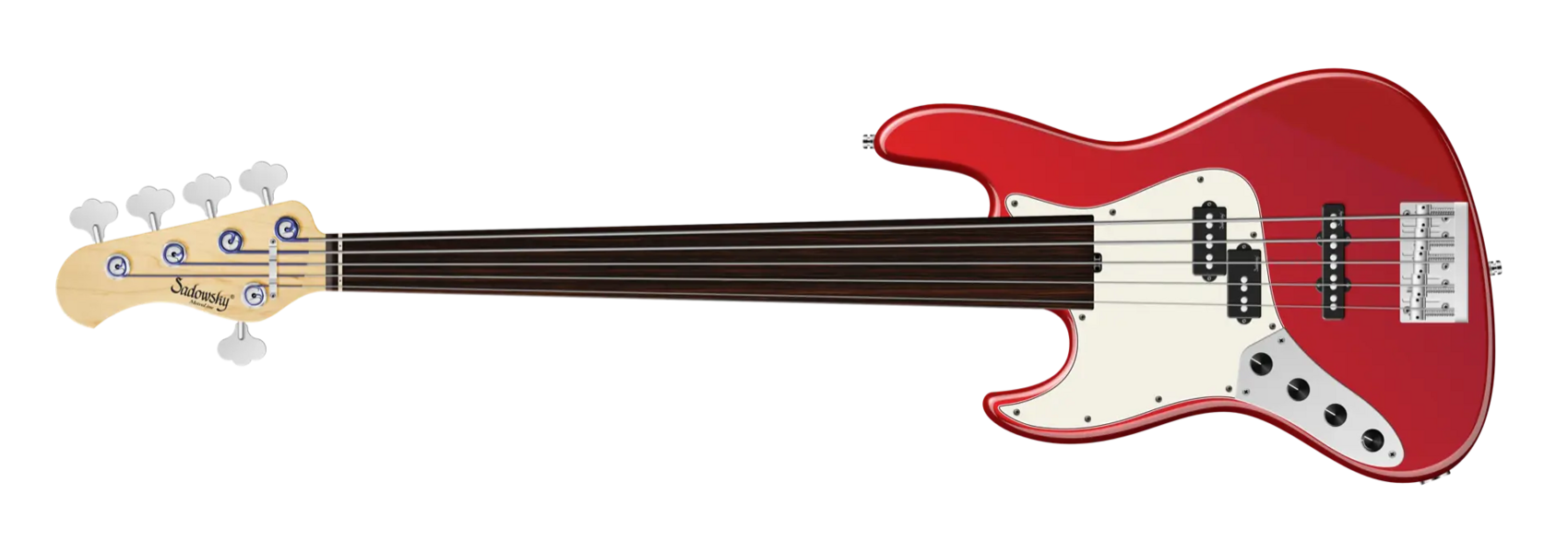 Roger Sadowsky hat es sich immer zum Ziel gesetzt, das Design eines Basses durch eine Reihe von spezifischen und integralen Änderungen zu verbessern. Durch den Bau seiner eigenen Elektronik gelang es Roger, den Klang eines traditionellen P/J-Basses mit dem speziellen Sadowsky-Ton zu verbessern: Niemals harsch oder schrill. Starker, kraftvoller Bass, der nie matschig ist. Präsente, aber nicht zu aggressive Mitten und ein süßer und luftiger Höhenbereich. Dieser 5-saitige Fretless Linkshänder-Bass hat einen schlanken, unterdimensionierten J-Style-Korpus (chambered) aus amerikanischer Sumpfesche, der mit einem Solid Candy Apple Red Metallic High Polish-Finish lackiert ist. Der Hals ist aus amerikanischem Ahorn gefertigt und mit einem Tigerstripe Ebony Griffbrett ausgestattet. Zu den besonderen Merkmalen dieses Basses gehören ein Sadowsky P-Style Hals-Tonabnehmer und ein J-Style Steg-Tonabnehmer, eine aktive Elektronik mit True Bypass, Vintage Tone Control, Treble und Bass Boost. Die Hardware umfasst leichte Sadowsky Open Gear Mechaniken und eine Sadowsky Quick String Release Bridge. Der Sadowsky MetroLine 21-Fret Vintage P/J Bass wird ausschließlich in Deutschland hergestellt und wird nie mehr als 4,0 kg wiegen. Er ist eine gute Wahl für Spieler, die einen leichten Bass mit einem modernen P/J-Bass-Sound suchen.