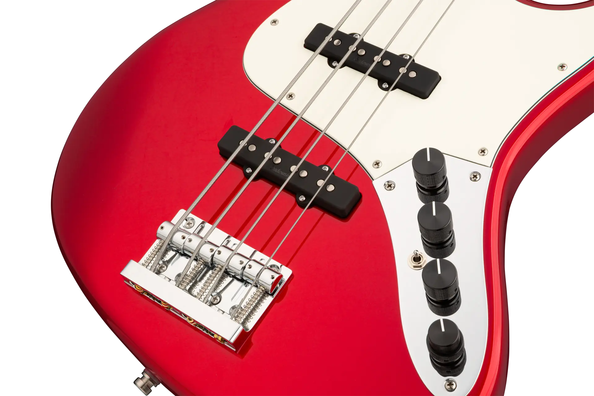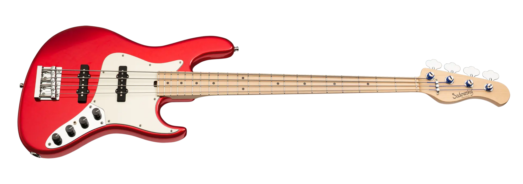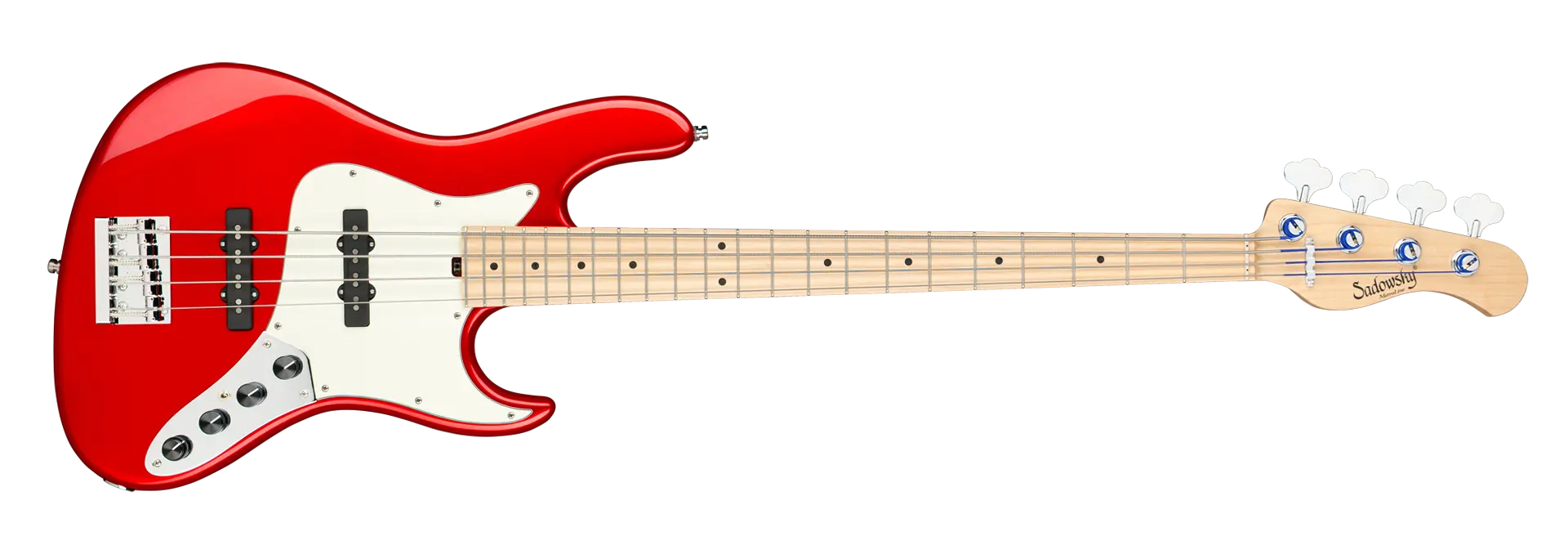Roger Sadowsky hat es sich zur Aufgabe gemacht ein bereits sehr erfolgreiches Bass-Design noch weiter zu verbessern, indem er eine Reihe von Detailverbesserungen vornahm. Zusammen mit der von ihm entwickelten Elektronik hat er es geschafft, den bekannten J/J-Bass-Sound auf ein neues Level zu heben, so dass man heute von einem typischen Sadowsky Tone sprechen kann: Niemals harsch klingend, mit tiefen, definierten, keinesfalls dumpfen Bässen, präsenten, jedoch nicht aufdringlichen Mitten sowie süßen und luftigen Höhen. Alle Merkmale dieses modernen Bass-Sounds findet man auch beim MetroLine Will Lee Artist Line, bekannt als einer der besten und am meisten angeforderten Session Player (Late Night / Late Show with David Letterman, Horace Silver, George Benson, Bette Middler u.v.a.). Diese 4-saitige Version - hier in einem Solid Candy Apple Red Metallic High Polish Finish - besitzt einen leicht verkleinerten J-Style Korpus (chambered) aus amerikanischer Sumpfesche, einen etwas schlankeren Hals aus amerikanischem Ahorn mit einem Griffbrett aus amerikanischem Ahorn, den speziell auf die Wünsche von Will Lee abgestimmten Preamp mit zusätzlichem Mittenboost bei 500 oder 800 Hz für mehr Punch, eine J/J Pickup Konfiguration, Vintage Tone Control, Treble- als auch Höhen Boost, die ultraleichten Sadowsky Stimmmechaniken und die spezielle Sadowsky Brücke, die einen schnellen Saitenwechsel ermöglicht. Dieses Artist Modell wird exklusiv in Deutschland gefertigt. Alle Bässe haben ein Gewicht von ca. 4,0 kg und sind damit auch für Bassisten interessant, die neben einem modernen Bass-Sound auch eine leichtgewichtige Lösung für die Bühne suchen.