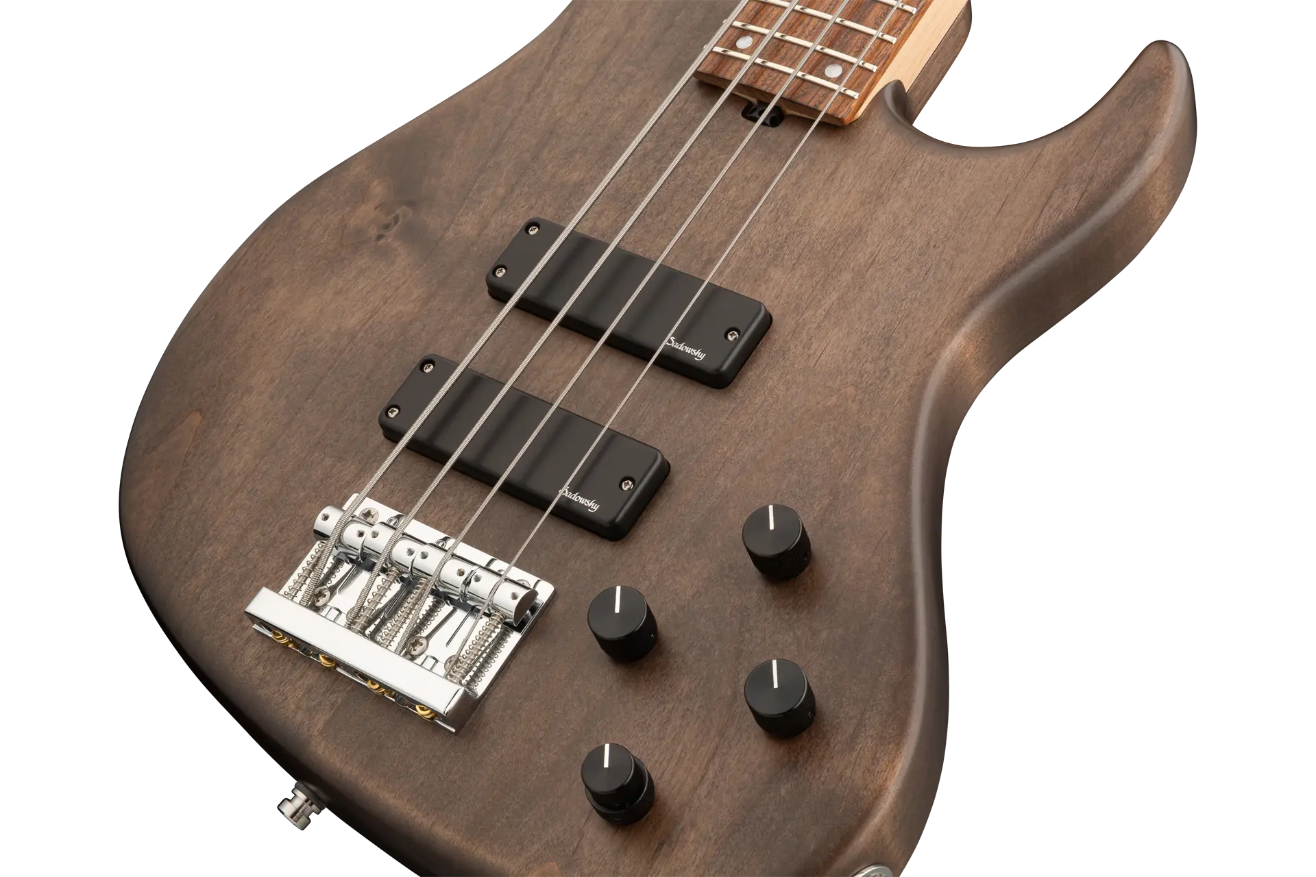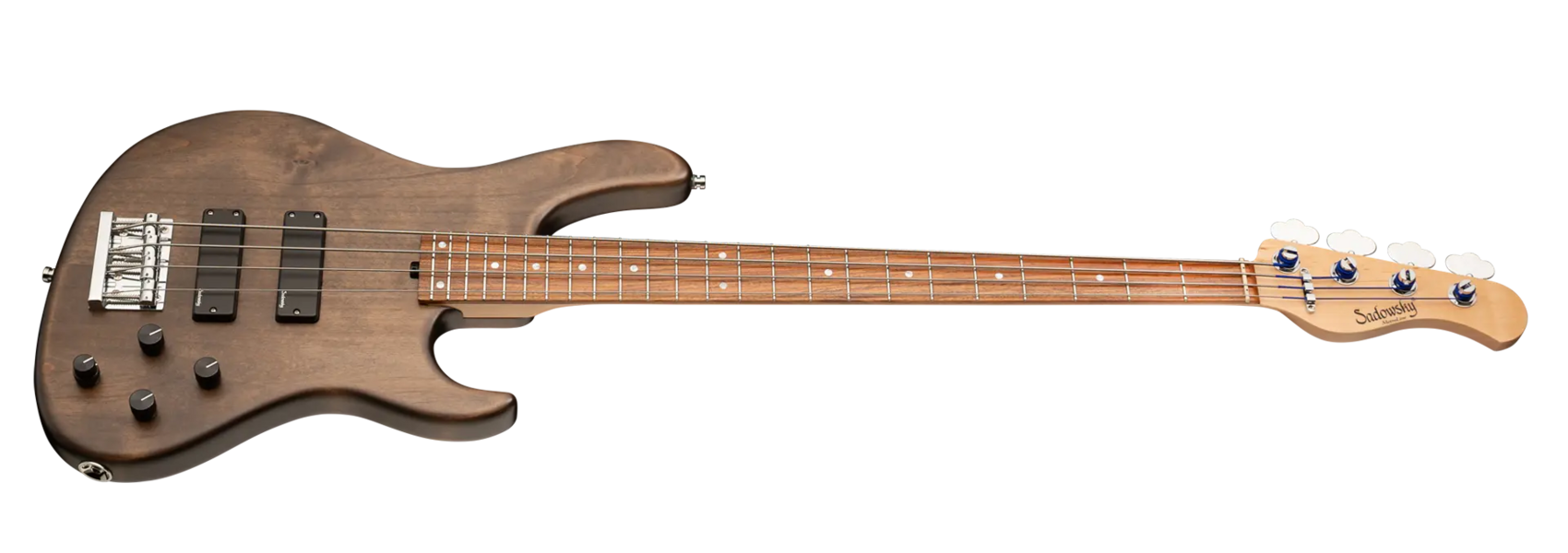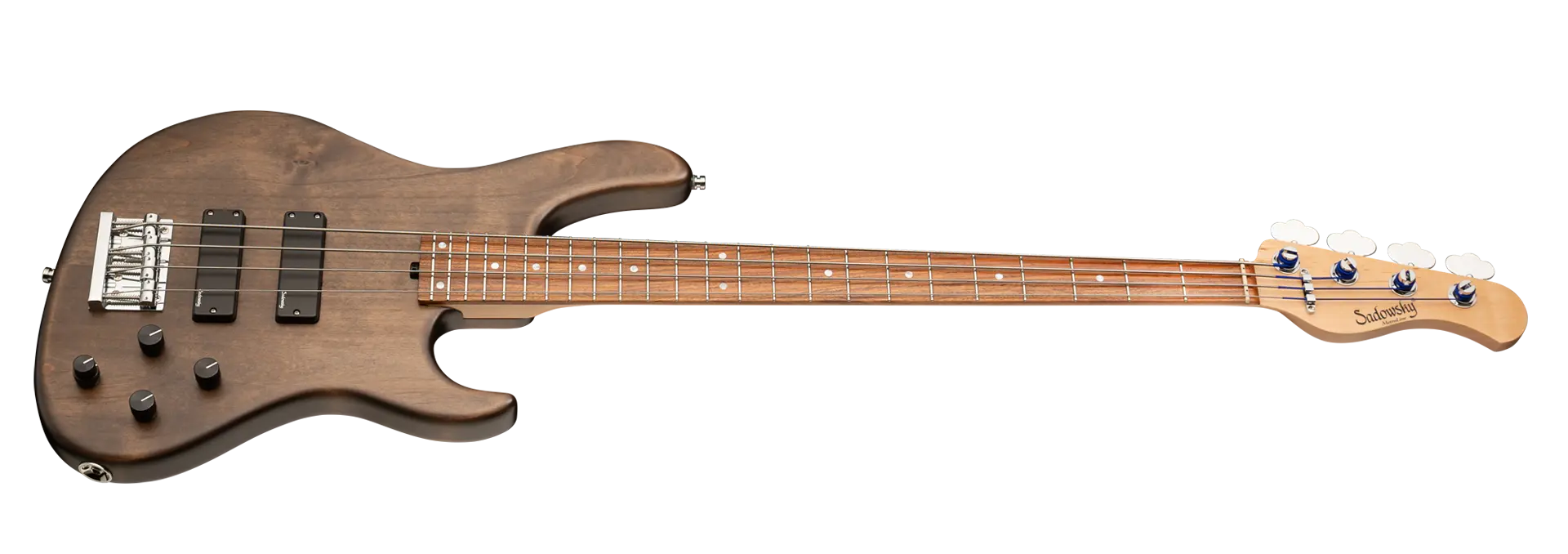 Der Sadowsky MetroLine 24-Fret Modern Bass ist perfekt für alle Spieler, die einen Bass in moderner Optik und dem berühmten Sadowsky-Ton suchen: Niemals harsch oder schrill klingend, mit starken, kraftvollen, aber nie matschigen Bässen, mit präsenten, aber nicht zu aggressiven Mitten und einem süßen und luftigen Höhenbereich. Der 4-saitige Bass hat einen Korpus aus amerikanischer Roterle (chambered). Hier in einer Nirvana Black Transparent Satin-Lackierung zu sehen, ist die Korpusform schlank und unterdimensioniert mit tieferen Cutaways für bessere Bespielbarkeit und einen vollen Tonumfang von zwei Oktaven. Der Hals ist aus amerikanischem Ahorn gefertigt und hat ein Morado (Pau Ferro) Griffbrett mit 24 Neusilberbünden. Dieser Bass ist mit zwei passiven Sadowsky Soapbar-Tonabnehmern ausgestattet, beide in moderner Position, und verfügt über eine aktive Elektronik, die True Bypass, Vintage Tone Control sowie Treble- und Bass-Boost bietet. Die Hardware umfasst Sadowsky Light Open Gear Mechaniken und eine Sadowsky Quick String Release Brücke. Jeder Sadowsky MetroLine 24-Fret Modern Bass wird ausschließlich in unserer Werkstatt in Deutschland gefertigt und wiegt nicht mehr als 4,0 kg. Eine gute Wahl für Bassisten, die auf der Suche nach einem leichten, modern aussehenden Bass mit dem speziellen modernen Sadowsky-Sound sind.