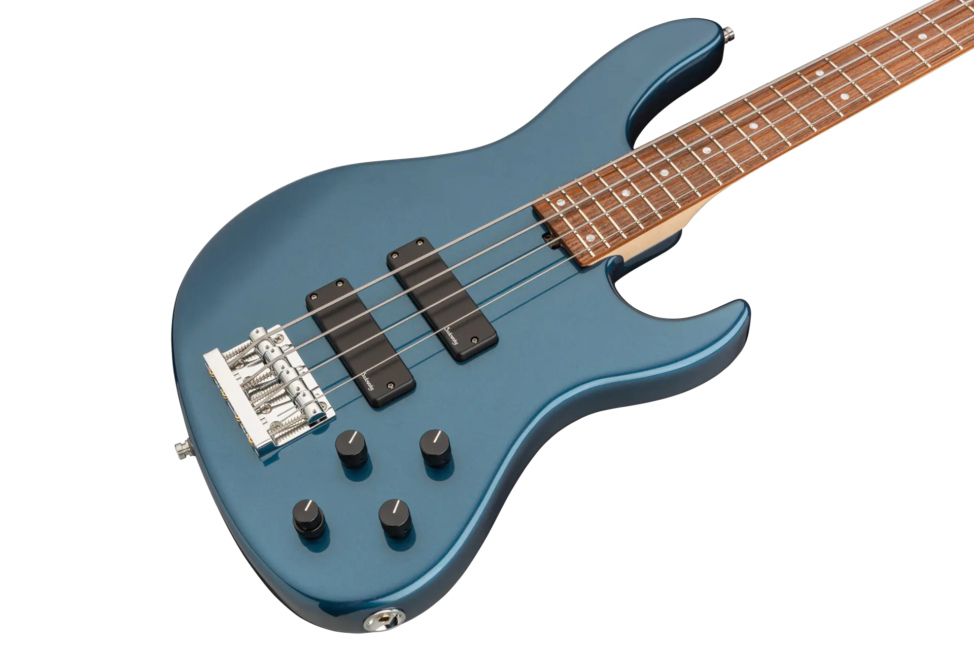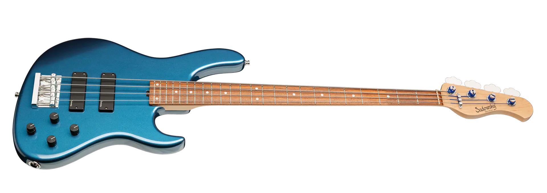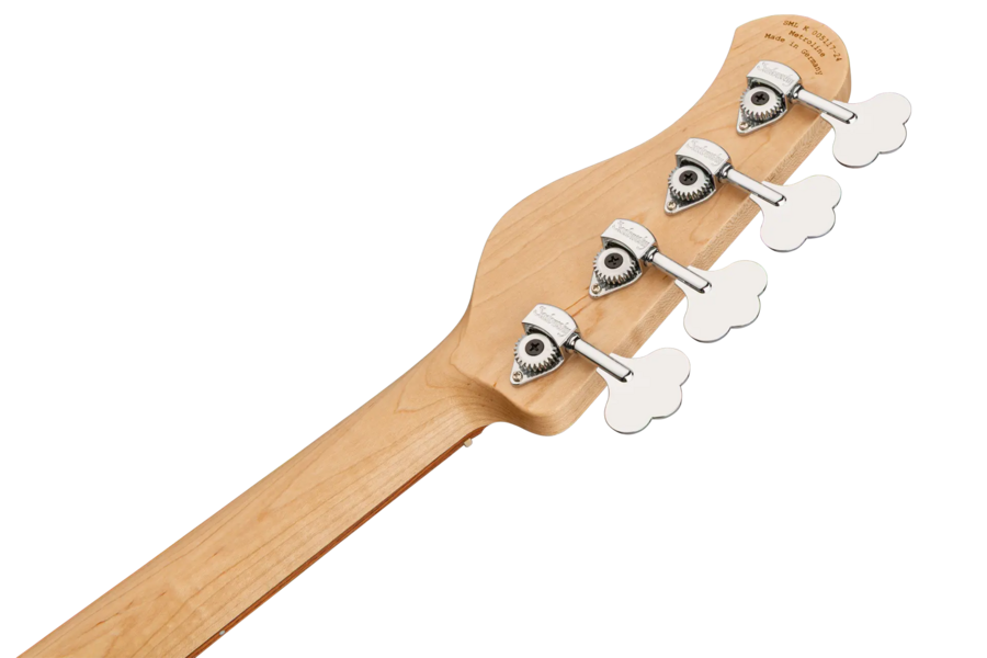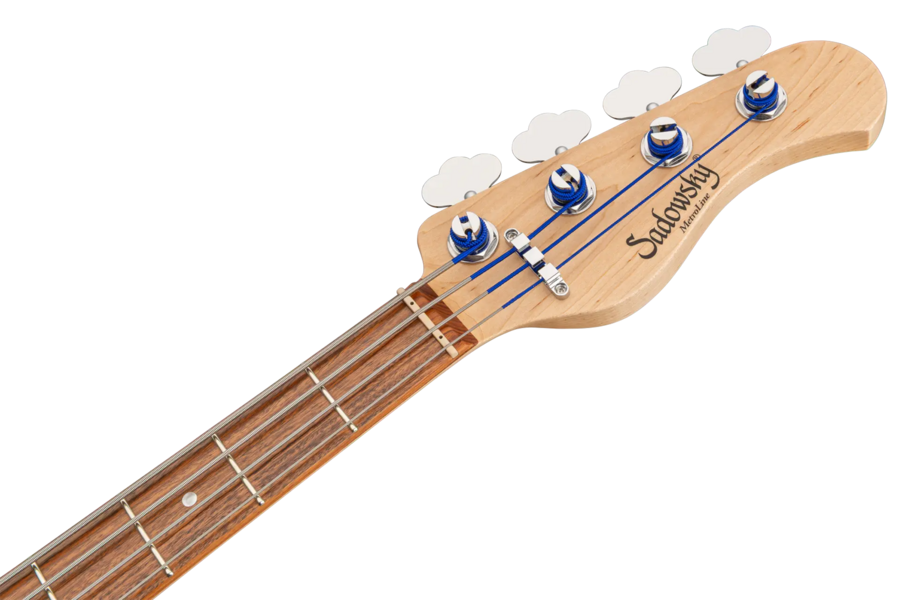 Der Sadowsky MetroLine 24-Fret Modern Bass ist perfekt für alle Spieler, die einen Bass in moderner Optik und dem berühmten Sadowsky-Ton suchen: Niemals harsch oder schrill klingend, mit starken, kraftvollen, aber nie matschigen Bässen, mit präsenten, aber nicht zu aggressiven Mitten und einem süßen und luftigen Höhenbereich. Der 4-saitige Bass hat einen Korpus aus amerikanischer Roterle (chambered). Hier in einer Solid Dark Lake Placid Blue Metallic High Polish-Lackierung zu sehen, ist die Korpusform schlank und unterdimensioniert mit tieferen Cutaways für bessere Bespielbarkeit und einen vollen Tonumfang von zwei Oktaven. Der Hals ist aus amerikanischem Ahorn gefertigt und hat ein Morado (Pau Ferro) Griffbrett mit 24 Neusilberbünden. Dieser Bass ist mit zwei passiven Sadowsky Soapbar-Tonabnehmern ausgestattet, beide in moderner Position, und verfügt über eine aktive Elektronik, die True Bypass, Vintage Tone Control sowie Treble- und Bass-Boost bietet. Die Hardware umfasst Sadowsky Light Open Gear Mechaniken und eine Sadowsky Quick String Release Brücke. Jeder Sadowsky MetroLine 24-Fret Modern Bass wird ausschließlich in unserer Werkstatt in Deutschland gefertigt und wiegt nicht mehr als 4,0 kg. Eine gute Wahl für Bassisten, die auf der Suche nach einem leichten, modern aussehenden Bass mit dem speziellen modernen Sadowsky-Sound sind.