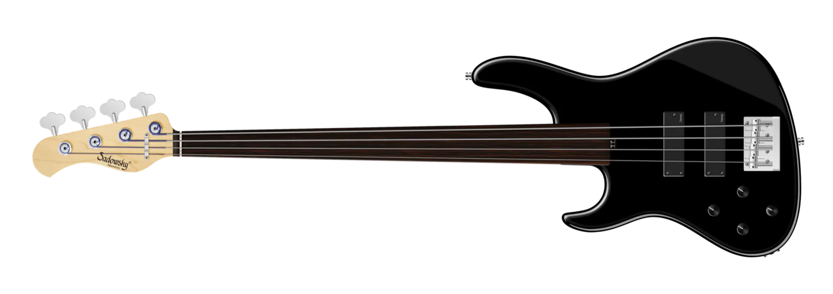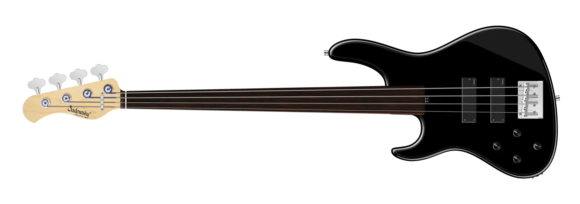 Der Sadowsky MetroLine 24-Fret Modern Bass ist perfekt für alle Spieler, die einen Bass in moderner Optik und dem berühmten Sadowsky-Ton suchen: Niemals harsch oder schrill klingend, mit starken, kraftvollen, aber nie matschigen Bässen, mit präsenten, aber nicht zu aggressiven Mitten und einem süßen und luftigen Höhenbereich. Der 4-saitige Fretless Linkshänder-Bass hat einen Korpus aus amerikanischer Roterle (chambered). Hier in einer Solid Black High Polish-Lackierung zu sehen, ist die Korpusform schlank und unterdimensioniert mit tieferen Cutaways für bessere Bespielbarkeit und einen vollen Tonumfang von zwei Oktaven. Der Hals ist aus amerikanischem Ahorn gefertigt und hat ein Tigerstripe Ebony Griffbrett. Dieser Bass ist mit zwei passiven Sadowsky Soapbar-Tonabnehmern ausgestattet, beide in moderner Position, und verfügt über eine aktive Elektronik, die True Bypass, Vintage Tone Control sowie Treble- und Bass-Boost bietet. Die Hardware umfasst Sadowsky Light Open Gear Mechaniken und eine Sadowsky Quick String Release Brücke. Jeder Sadowsky MetroLine 24-Fret Modern Bass wird ausschließlich in unserer Werkstatt in Deutschland gefertigt und wiegt nicht mehr als 4,0 kg. Eine gute Wahl für Bassisten, die auf der Suche nach einem leichten, modern aussehenden Bass mit dem speziellen modernen Sadowsky-Sound sind.