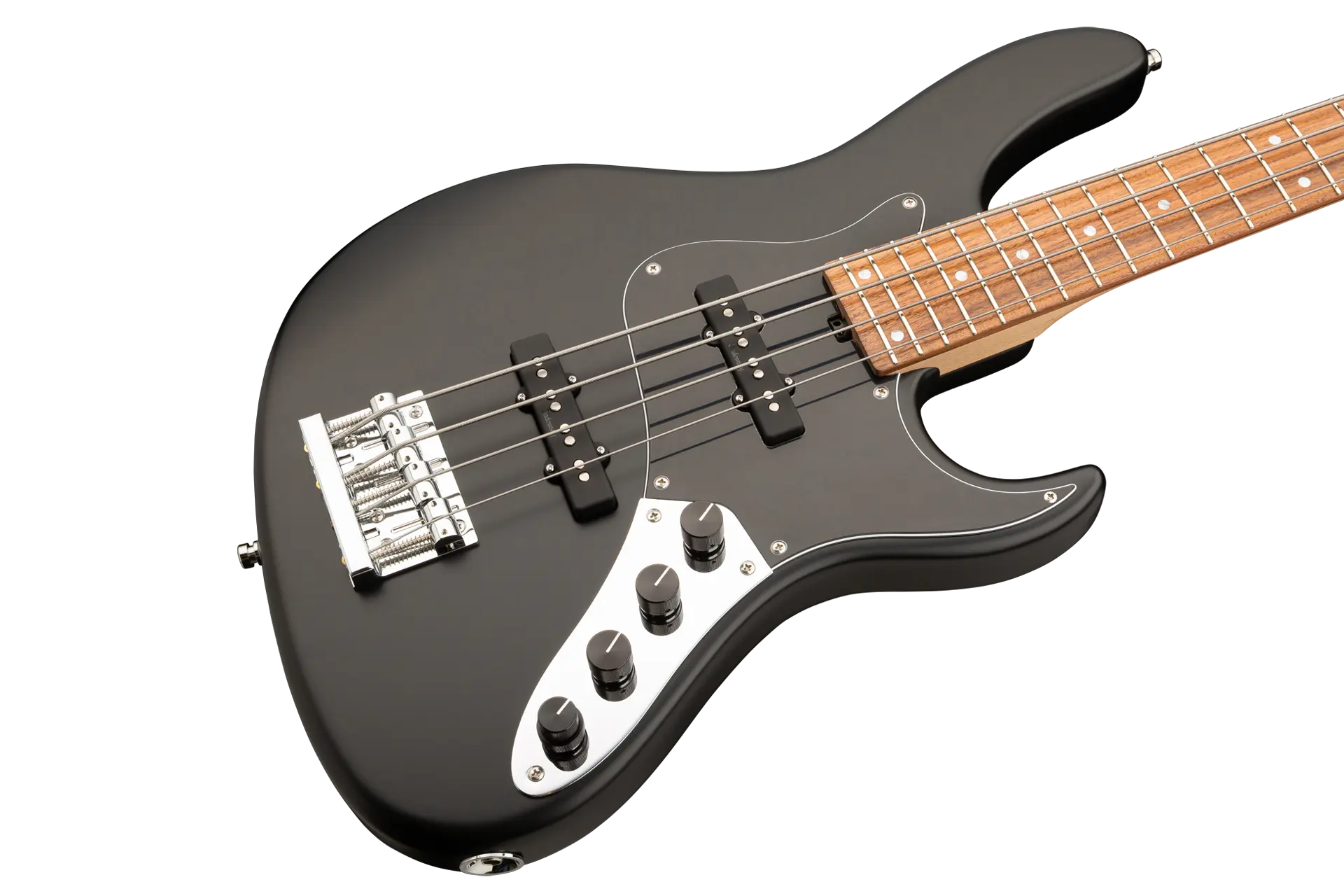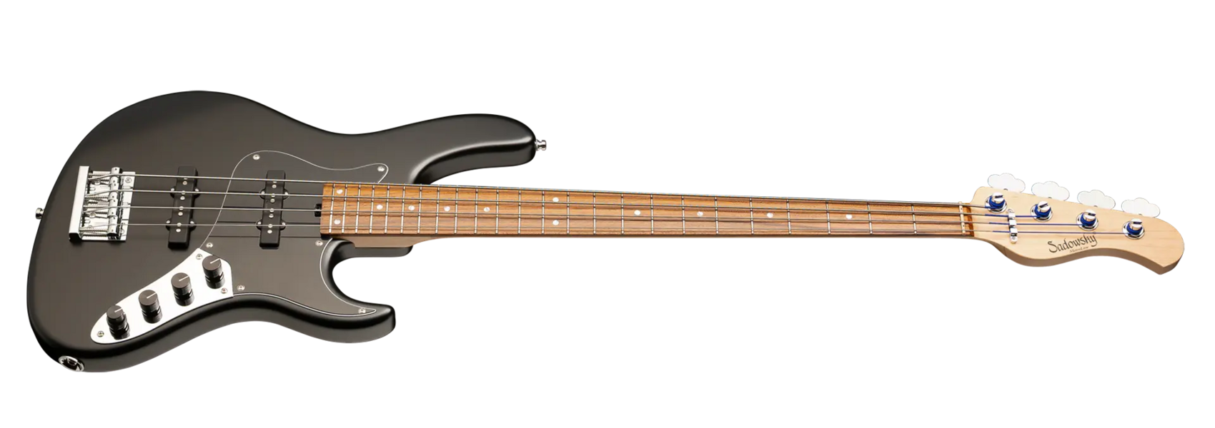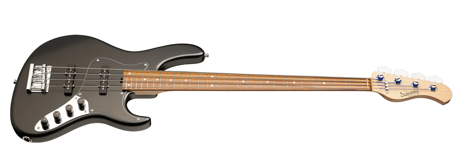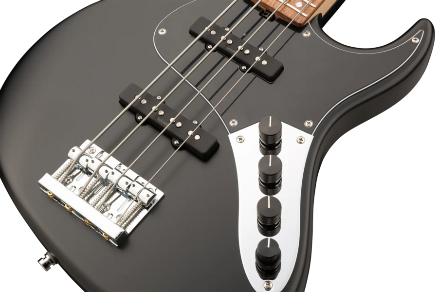 Der Sadowsky MetroLine 24-Fret Vintage J/J Bass ist eine Hommage an Roger Sadowskys Fähigkeit, ein bereits erfolgreiches Bassdesign durch eine Reihe von Detailveränderungen erheblich zu verbessern, was zu dem speziellen Sadowsky-Basston führt: Niemals harsch oder schrill klingend, mit starken, kraftvollen, aber niemals matschigen Bässen. Präsent, aber nicht zu aggressiv in den Mitten, und mit süßen und luftigen Höhen. Dieser 4-saitige Bass hat einen schlanken, unterdimensionierten, J-Style-Korpus aus amerikanischer Roterle (chambered), der mit einer Solid Black Satin-Lackierung versehen ist. Er ist mit Sadowsky J-Style Pickups und aktiver Elektronik mit True Bypass, Vintage Tone Control und Treble/Bass Boost ausgestattet. Der amerikanische Ahorn Hals hat ein Morado (Pau Ferro) Griffbrett mit 24 Neusilber-Bünden. Die Hardware umfasst ultraleichte Sadowsky Mechaniken und die spezielle Sadowsky Quick String Release Brücke. Ein Sadowsky MetroLine 24-Fret Vintage J/J Bass, der ausschließlich in Deutschland hergestellt wird, wiegt nie mehr als 4,0 kg / 8,9 lbs. Er ist eine ausgezeichnete Wahl für Bassisten, die ein leichtes Instrument mit einem modernen Bass-Sound suchen.