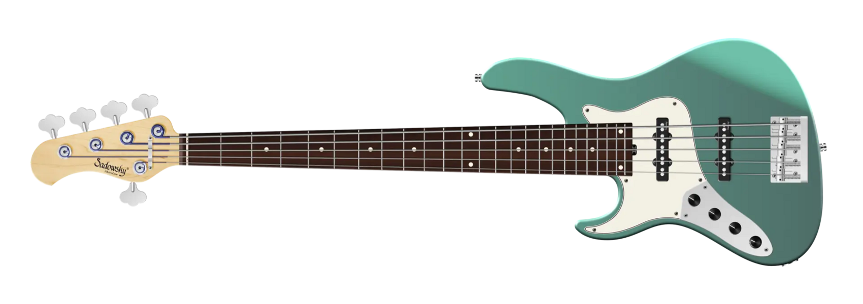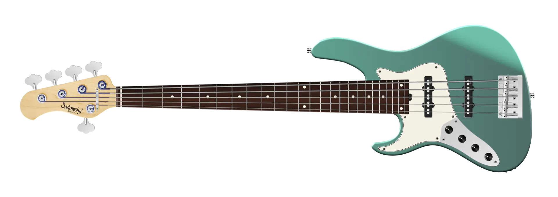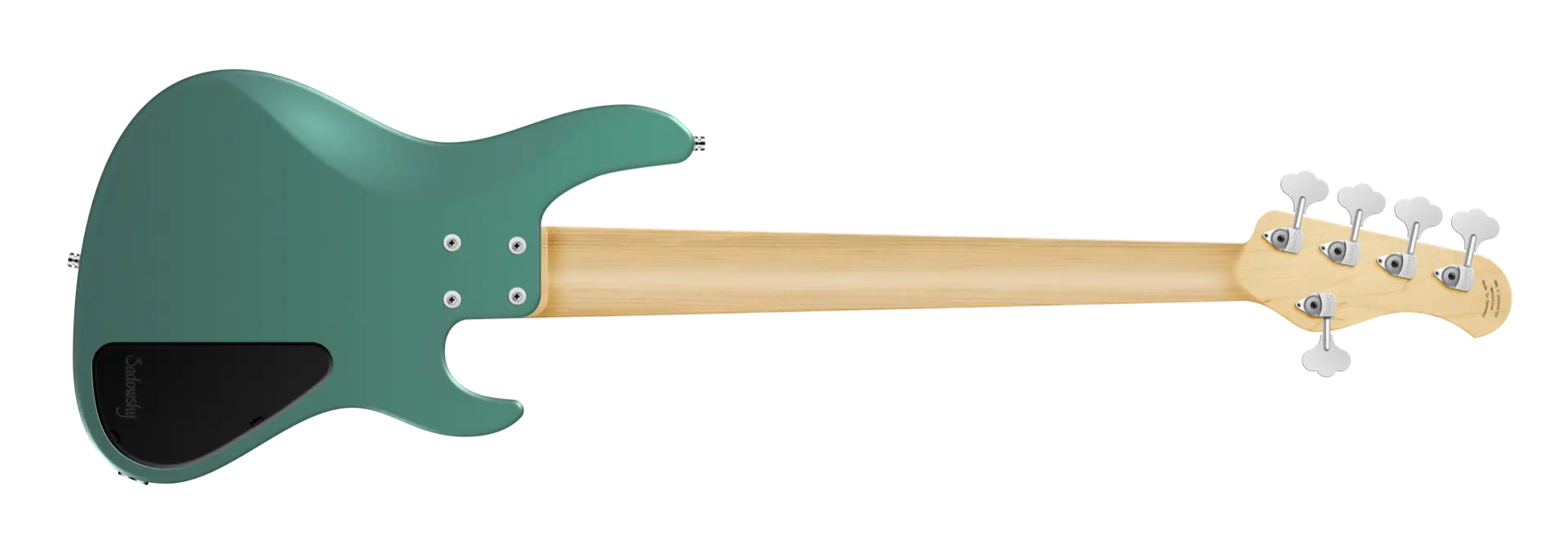 Der Sadowsky MetroLine 24-Fret Vintage J/J Bass ist eine Hommage an Roger Sadowskys Fähigkeit, ein bereits erfolgreiches Bassdesign durch eine Reihe von Detailveränderungen erheblich zu verbessern, was zu dem speziellen Sadowsky-Basston führt: Niemals harsch oder schrill klingend, mit starken, kraftvollen, aber niemals matschigen Bässen. Präsent, aber nicht zu aggressiv in den Mitten, und mit süßen und luftigen Höhen. Dieser 5-saitige Linkshänder-Bass hat einen schlanken, unterdimensionierten, J-Style-Korpus aus amerikanischer Roterle (chambered), der mit einer Solid Sage Green Metallic Satin-Lackierung versehen ist. Er ist mit Sadowsky J-Style Pickups und aktiver Elektronik mit True Bypass, Vintage Tone Control und Treble/Bass Boost ausgestattet. Der amerikanische Ahorn Hals hat ein Morado (Pau Ferro) Griffbrett mit 24 Neusilber-Bünden. Die Hardware umfasst ultraleichte Sadowsky Mechaniken und die spezielle Sadowsky Quick String Release Brücke. Ein Sadowsky MetroLine 24-Fret Vintage J/J Bass, der ausschließlich in Deutschland hergestellt wird, wiegt nie mehr als 4,0 kg / 8,9 lbs. Er ist eine ausgezeichnete Wahl für Bassisten, die ein leichtes Instrument mit einem modernen Bass-Sound suchen.