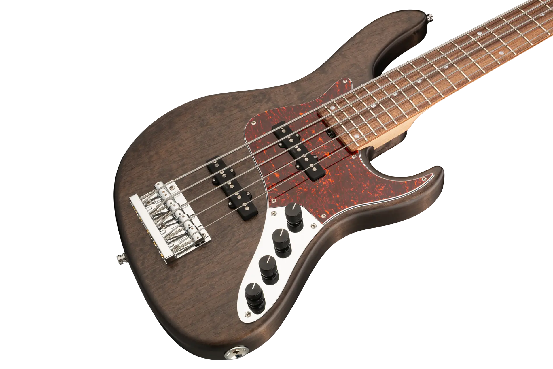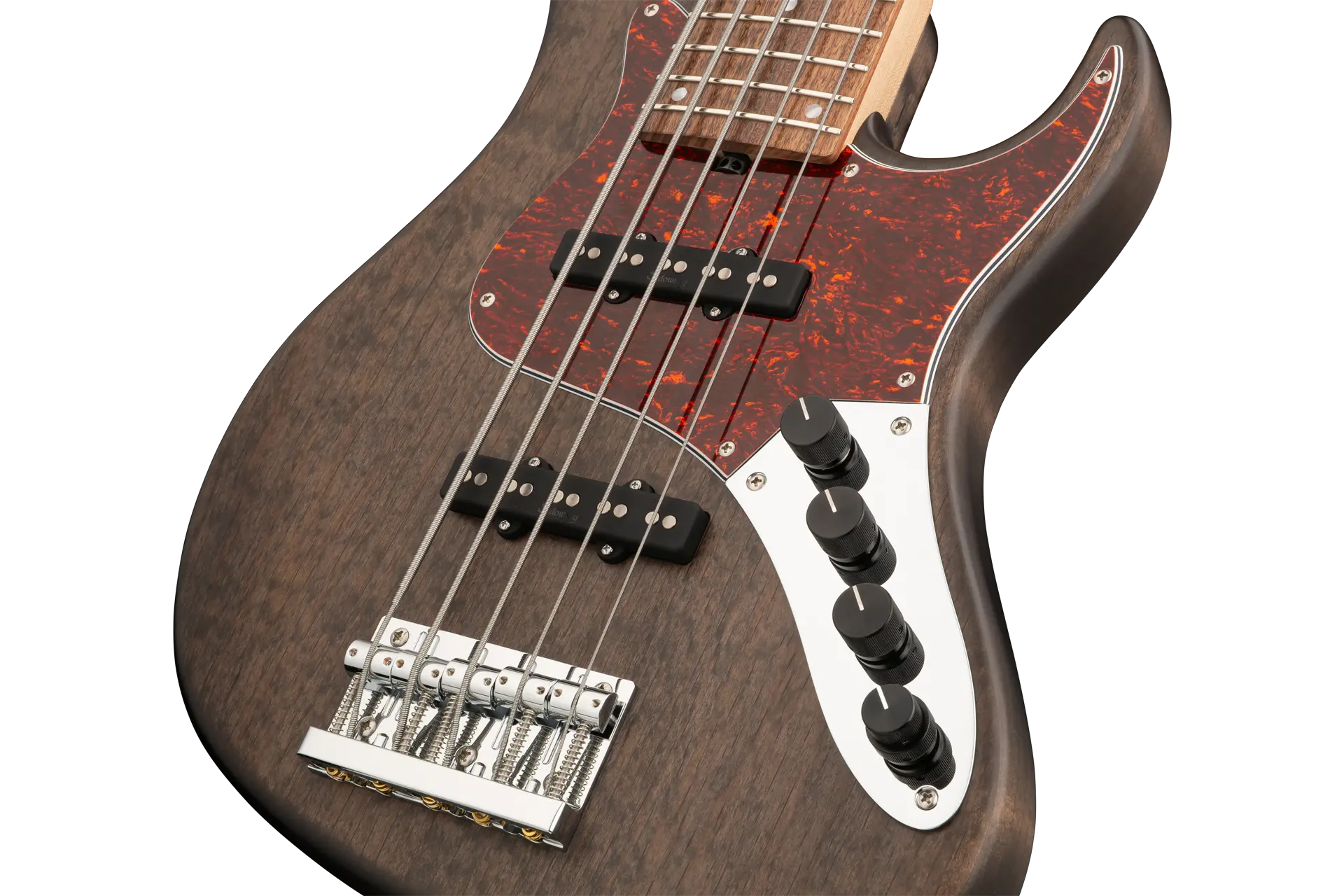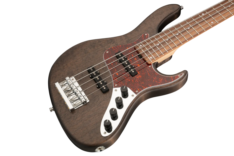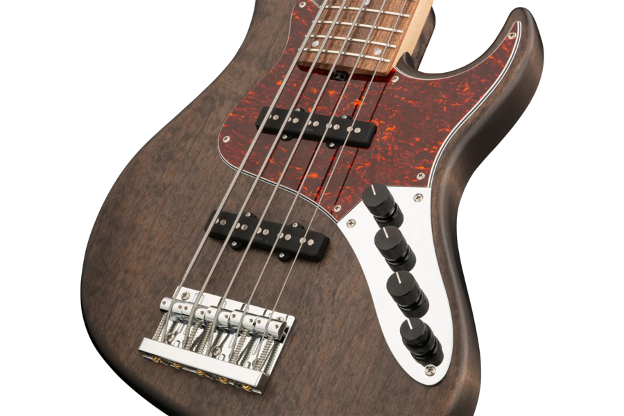 Der Sadowsky MetroLine 24-Fret Vintage J/J Bass ist eine Hommage an Roger Sadowskys Fähigkeit, ein bereits erfolgreiches Bassdesign durch eine Reihe von Detailveränderungen erheblich zu verbessern, was zu dem speziellen Sadowsky-Basston führt: Niemals harsch oder schrill klingend, mit starken, kraftvollen, aber niemals matschigen Bässen. Präsent, aber nicht zu aggressiv in den Mitten, und mit süßen und luftigen Höhen. Dieser 5-saitige Bass hat einen schlanken, unterdimensionierten, J-Style-Korpus aus amerikanischer Roterle (chambered), der mit einer Nirvana Black Transparent Satin-Lackierung versehen ist. Er ist mit Sadowsky J-Style Pickups und aktiver Elektronik mit True Bypass, Vintage Tone Control und Treble/Bass Boost ausgestattet. Der amerikanische Ahorn Hals hat ein Morado (Pau Ferro) Griffbrett mit 24 Neusilber-Bünden. Die Hardware umfasst ultraleichte Sadowsky Mechaniken und die spezielle Sadowsky Quick String Release Brücke. Ein Sadowsky MetroLine 24-Fret Vintage J/J Bass, der ausschließlich in Deutschland hergestellt wird, wiegt nie mehr als 4,0 kg / 8,9 lbs. Er ist eine ausgezeichnete Wahl für Bassisten, die ein leichtes Instrument mit einem modernen Bass-Sound suchen.