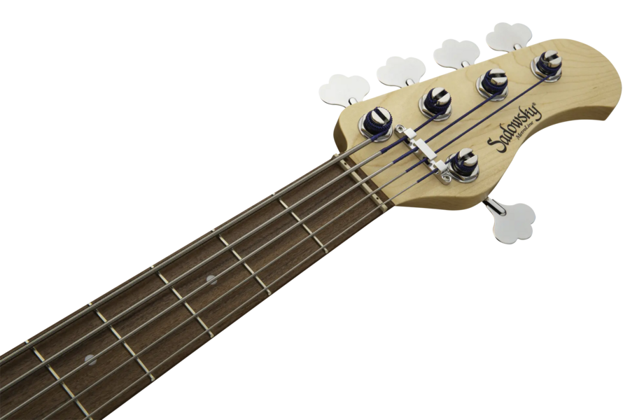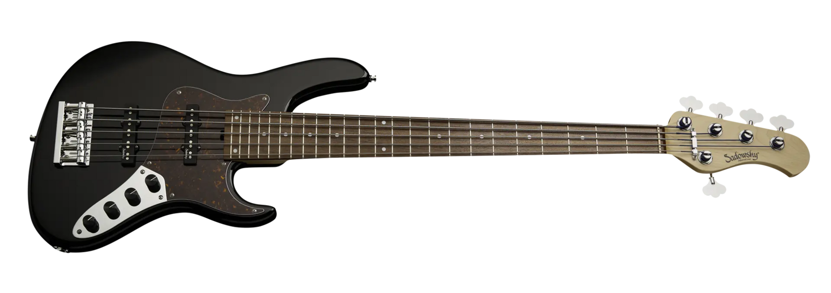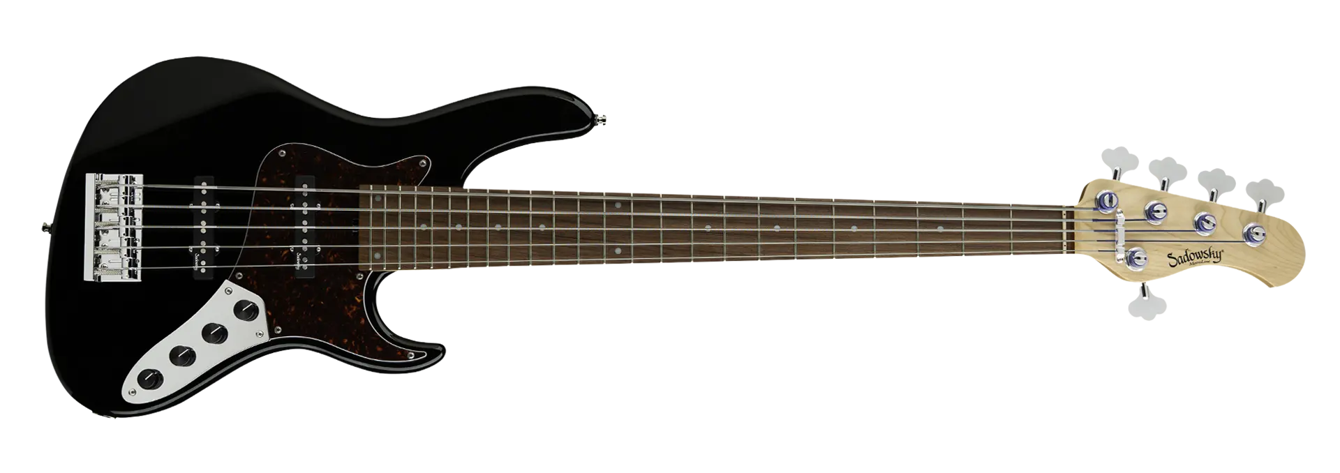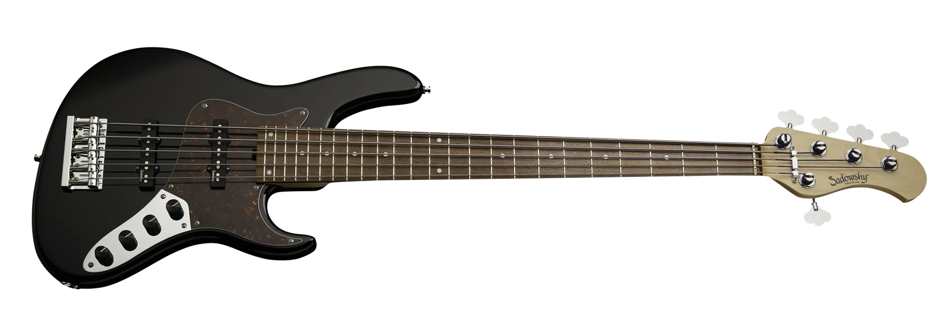 Der Sadowsky MetroLine 24-Fret Vintage J/J Bass ist eine Hommage an Roger Sadowskys Fähigkeit, ein bereits erfolgreiches Bassdesign durch eine Reihe von Detailveränderungen erheblich zu verbessern, was zu dem speziellen Sadowsky-Basston führt: Niemals harsch oder schrill klingend, mit starken, kraftvollen, aber niemals matschigen Bässen. Präsent, aber nicht zu aggressiv in den Mitten, und mit süßen und luftigen Höhen. Dieser 5-saitige Bass hat einen schlanken, unterdimensionierten, J-Style-Korpus aus amerikanischer Roterle (chambered), der mit einer Solid Black High Polish-Lackierung versehen ist. Er ist mit Sadowsky J-Style Pickups und aktiver Elektronik mit True Bypass, Vintage Tone Control und Treble/Bass Boost ausgestattet. Der amerikanische Ahorn Hals hat ein Morado (Pau Ferro) Griffbrett mit 24 Neusilber-Bünden. Die Hardware umfasst ultraleichte Sadowsky Mechaniken und die spezielle Sadowsky Quick String Release Brücke. Ein Sadowsky MetroLine 24-Fret Vintage J/J Bass, der ausschließlich in Deutschland hergestellt wird, wiegt nie mehr als 4,0 kg / 8,9 lbs. Er ist eine ausgezeichnete Wahl für Bassisten, die ein leichtes Instrument mit einem modernen Bass-Sound suchen.