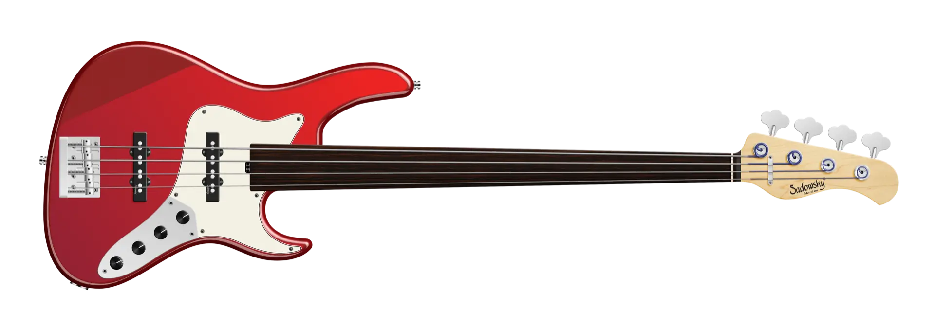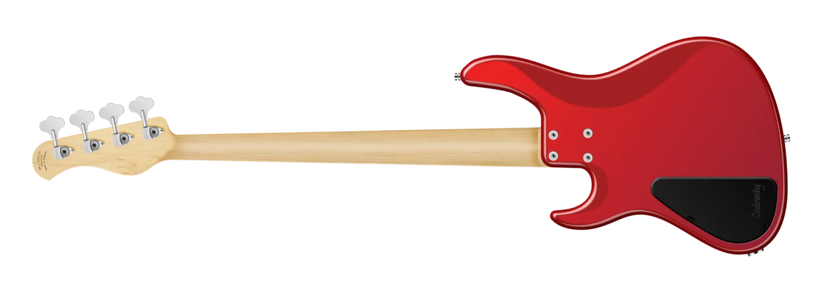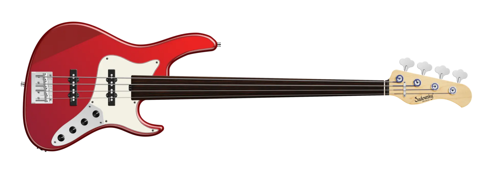 Der Sadowsky MetroLine 24-Fret Vintage J/J Bass ist eine Hommage an Roger Sadowskys Fähigkeit, ein bereits erfolgreiches Bassdesign durch eine Reihe von Detailveränderungen erheblich zu verbessern, was zu dem speziellen Sadowsky-Basston führt: Niemals harsch oder schrill klingend, mit starken, kraftvollen, aber niemals matschigen Bässen. Präsent, aber nicht zu aggressiv in den Mitten, und mit süßen und luftigen Höhen. Dieser bundlose 4-saitige Bass hat einen schlanken, unterdimensionierten, J-Style-Korpus aus amerikanischer Roterle (chambered), der mit einer Solid Candy Apple Red Metallic High Polish-Lackierung versehen ist. Er ist mit Sadowsky J-Style Pickups und aktiver Elektronik mit True Bypass, Vintage Tone Control und Treble/Bass Boost ausgestattet. Der amerikanische Ahorn Hals hat ein Tigerstripe Ebony Griffbrett mit 24 Neusilber-Bünden. Die Hardware umfasst ultraleichte Sadowsky Mechaniken und die spezielle Sadowsky Quick String Release Brücke. Ein Sadowsky MetroLine 24-Fret Vintage J/J Bass, der ausschließlich in Deutschland hergestellt wird, wiegt nie mehr als 4,0 kg. Er ist eine ausgezeichnete Wahl für Bassisten, die ein leichtes Instrument mit einem modernen Bass-Sound suchen.