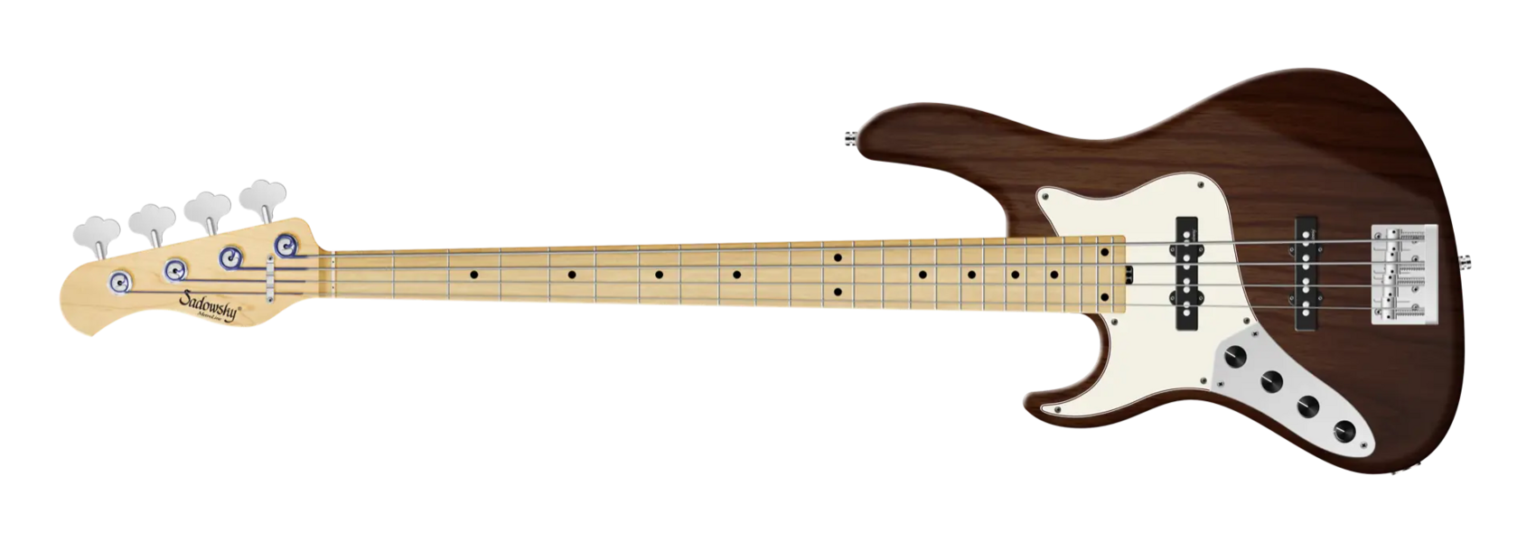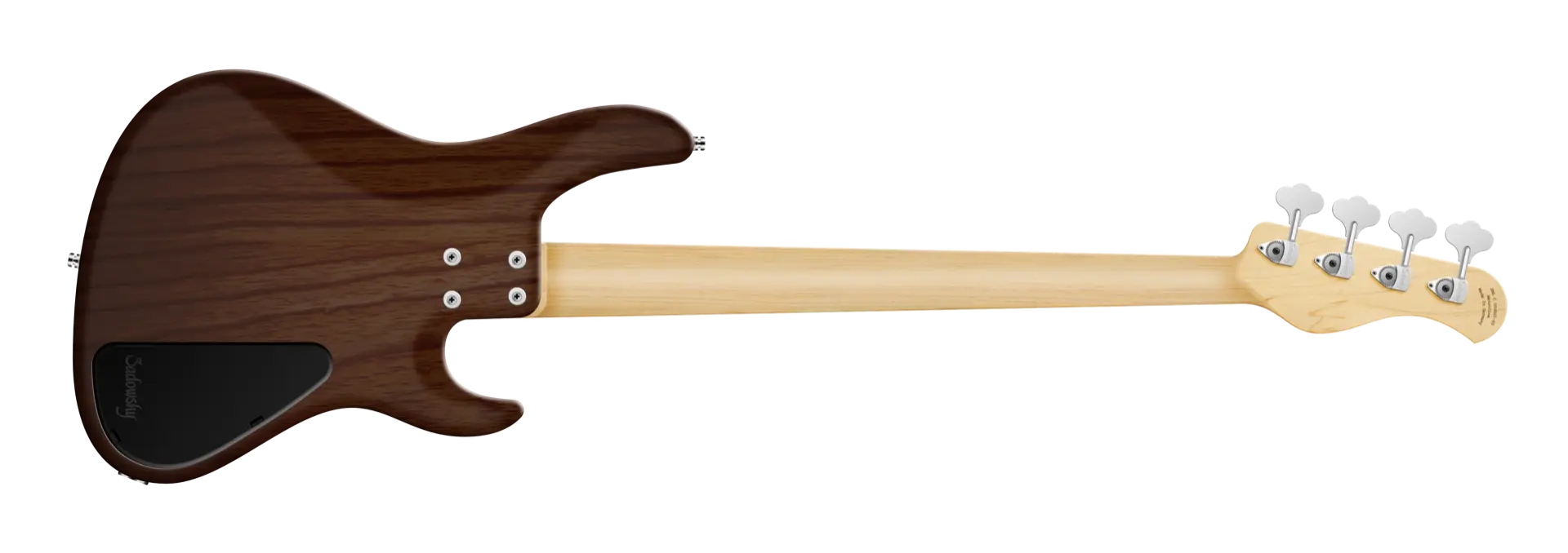 Der Sadowsky MetroLine 24-Fret Vintage J/J Bass ist eine Hommage an Roger Sadowskys Fähigkeit, ein bereits erfolgreiches Bassdesign durch eine Reihe von Detailveränderungen erheblich zu verbessern, was zu dem speziellen Sadowsky-Basston führt: Niemals harsch oder schrill klingend, mit starken, kraftvollen, aber niemals matschigen Bässen. Präsent, aber nicht zu aggressiv in den Mitten, und mit süßen und luftigen Höhen. Dieser 4-saitige Linkshänder-Bass hat einen schlanken, unterdimensionierten, J-Style-Korpus aus amerikanischer Sumpfesche (chambered), der mit einer Antique Tobacco Transparent Satin-Lackierung versehen ist. Er ist mit Sadowsky J-Style Pickups und aktiver Elektronik mit True Bypass, Vintage Tone Control und Treble/Bass Boost ausgestattet. Der amerikanische Ahorn Hals hat ein Griffbrett aus amerikanischem Ahorn mit 24 Neusilber-Bünden. Die Hardware umfasst ultraleichte Sadowsky Mechaniken und die spezielle Sadowsky Quick String Release Brücke. Ein Sadowsky MetroLine 24-Fret Vintage J/J Bass, der ausschließlich in Deutschland hergestellt wird, wiegt nie mehr als 4,0 kg / 8,9 lbs. Er ist eine ausgezeichnete Wahl für Bassisten, die ein leichtes Instrument mit einem modernen Bass-Sound suchen.