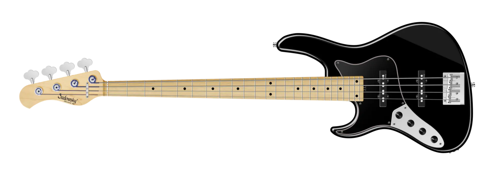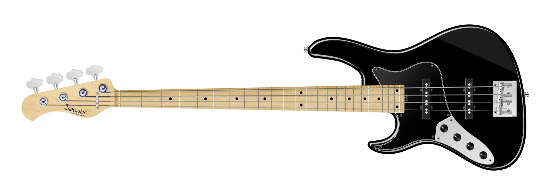 Der Sadowsky MetroLine 24-Fret Vintage J/J Bass ist eine Hommage an Roger Sadowskys Fähigkeit, ein bereits erfolgreiches Bassdesign durch eine Reihe von Detailveränderungen erheblich zu verbessern, was zu dem speziellen Sadowsky-Basston führt: Niemals harsch oder schrill klingend, mit starken, kraftvollen, aber niemals matschigen Bässen. Präsent, aber nicht zu aggressiv in den Mitten, und mit süßen und luftigen Höhen. Dieser 4-saitige Linkshänder-Bass hat einen schlanken, unterdimensionierten, J-Style-Korpus aus amerikanischer Sumpfesche (chambered), der mit einer Solid Black Satin-Lackierung versehen ist. Er ist mit Sadowsky J-Style Pickups und aktiver Elektronik mit True Bypass, Vintage Tone Control und Treble/Bass Boost ausgestattet. Der amerikanische Ahorn Hals hat ein Griffbrett aus amerikanischem Ahorn mit 24 Neusilber-Bünden. Die Hardware umfasst ultraleichte Sadowsky Mechaniken und die spezielle Sadowsky Quick String Release Brücke. Ein Sadowsky MetroLine 24-Fret Vintage J/J Bass, der ausschließlich in Deutschland hergestellt wird, wiegt nie mehr als 4,0 kg / 8,9 lbs. Er ist eine ausgezeichnete Wahl für Bassisten, die ein leichtes Instrument mit einem modernen Bass-Sound suchen.