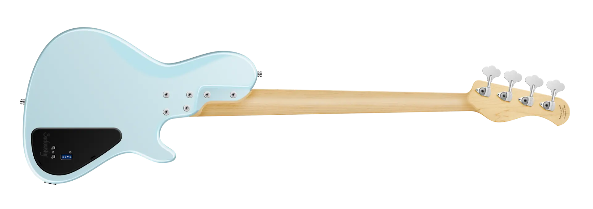 Der Sadowsky MetroLine 24-Fret Vintage Single Cut 4-saitiger Linkshänder-Bass verfügt über einen schlanken, unterdimensionierten Korpus im Single-Cut-Stil aus amerikanischer Roterle (chambered) mit einer Solid Ice Blue Metallic Satin-Lackierung. Der Hals ist aus amerikanischem Ahorn gefertigt und mit einem Morado (Pau Ferro) Griffbrett ausgestattet. Zu den besonderen Merkmalen dieses Basses gehören Sadowsky J-Style Pickups sowie Rogers berühmte Elektronik mit einem Preamp mit schaltbarem Mid-Boost und Trim-Poti (wahlweise 500 oder 800 Hz, schmal- oder breitbandig), Vintage Tone Control und einem Preamp Bypass. Zu den Reglern gehören Volume, Balance, VTC (P/P), Treble und Bass. Die Hardware umfasst eine Sadowsky Quick String Release Bridge und leichte, offene Sadowsky Mechaniken. Ein Sadowsky MetroLine 24-Fret Vintage Single Cut Bass wird ausschließlich in Deutschland hergestellt und wiegt nie mehr als 4,0 kg. Er ist eine gute Wahl für Spieler, die einen leichten Single-Cut-Bass mit dem berühmten Sadowsky Sound suchen: ein starker, kraftvoller Bass, der nie matschig ist. Mitten, die präsent, aber nicht zu aggressiv sind, und ein süßer und luftiger Höhenbereich.