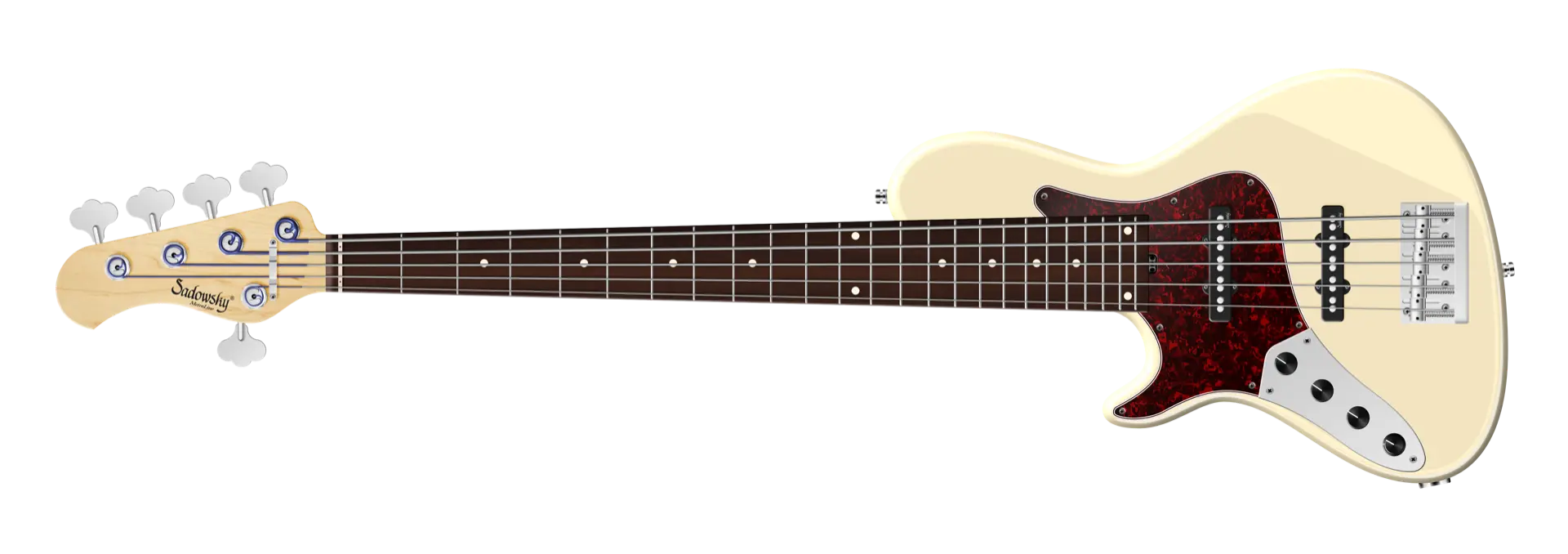 Der Sadowsky MetroLine 24-Fret Vintage Single Cut 5-saitiger Linkshänder-Bass verfügt über einen schlanken, unterdimensionierten Korpus im Single-Cut-Stil aus amerikanischer Roterle (chambered) mit einer Solid Olympic White High Polish-Lackierung. Der Hals ist aus amerikanischem Ahorn gefertigt und mit einem Morado (Pau Ferro) Griffbrett ausgestattet. Zu den besonderen Merkmalen dieses Basses gehören Sadowsky J-Style Pickups sowie Rogers berühmte Elektronik mit einem Preamp mit schaltbarem Mid-Boost und Trim-Poti (wahlweise 500 oder 800 Hz, schmal- oder breitbandig), Vintage Tone Control und einem Preamp Bypass. Zu den Reglern gehören Volume, Balance, VTC (P/P), Treble und Bass. Die Hardware umfasst eine Sadowsky Quick String Release Bridge und leichte, offene Sadowsky Mechaniken. Ein Sadowsky MetroLine 24-Fret Vintage Single Cut Bass wird ausschließlich in Deutschland hergestellt und wiegt nie mehr als 4,0 kg. Er ist eine gute Wahl für Spieler, die einen leichten Single-Cut-Bass mit dem berühmten Sadowsky Sound suchen: ein starker, kraftvoller Bass, der nie matschig ist. Mitten, die präsent, aber nicht zu aggressiv sind, und ein süßer und luftiger Höhenbereich.
