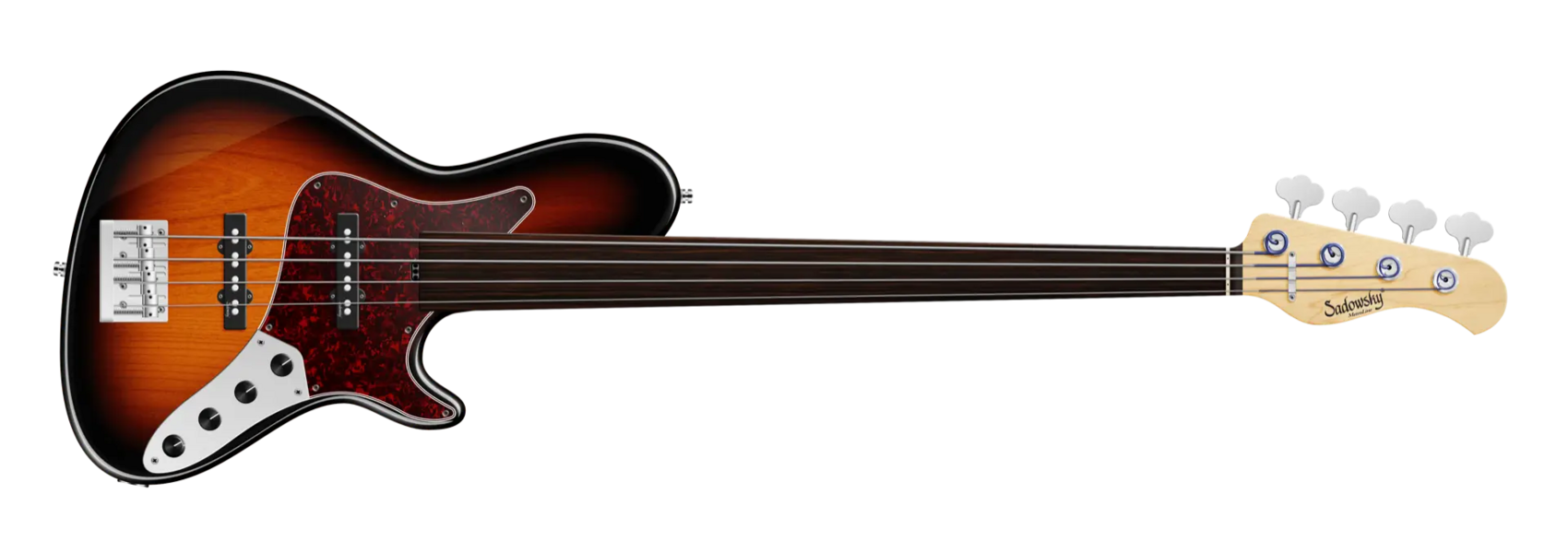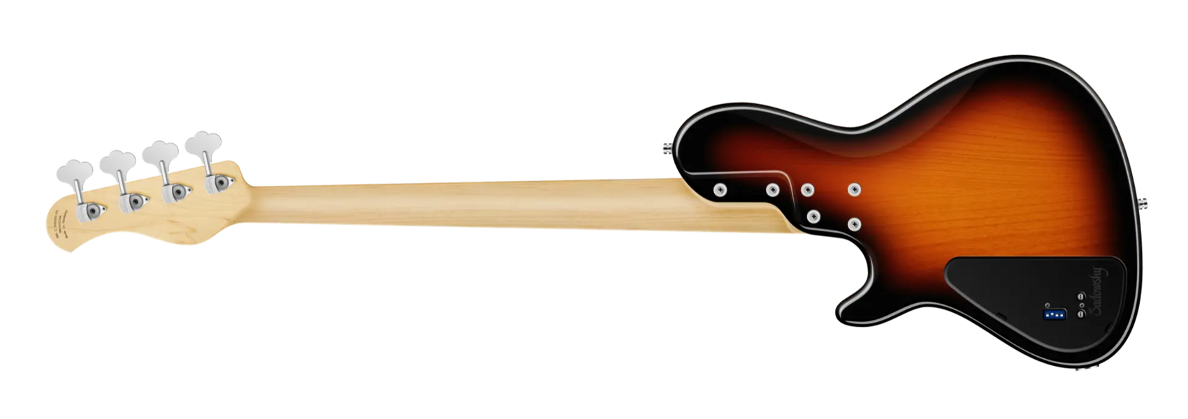Der Sadowsky MetroLine 24-Fret Vintage Single Cut 4-saitiger Fretless-Bass verfügt über einen schlanken, unterdimensionierten Korpus im Single-Cut-Stil aus amerikanischer Roterle (chambered) mit einer '59 Burst Transparent High Polish-Lackierung. Der Hals ist aus amerikanischem Ahorn gefertigt und mit einem Tigerstripe Ebony Griffbrett ausgestattet. Zu den besonderen Merkmalen dieses Basses gehören Sadowsky J-Style Pickups sowie Rogers berühmte Elektronik mit einem Preamp mit schaltbarem Mid-Boost und Trim-Poti (wahlweise 500 oder 800 Hz, schmal- oder breitbandig), Vintage Tone Control und einem Preamp Bypass. Zu den Reglern gehören Volume, Balance, VTC (P/P), Treble und Bass. Die Hardware umfasst eine Sadowsky Quick String Release Bridge und leichte, offene Sadowsky Mechaniken. Ein Sadowsky MetroLine 24-Fret Vintage Single Cut Bass wird ausschließlich in Deutschland hergestellt und wiegt nie mehr als 4,0 kg. Er ist eine gute Wahl für Spieler, die einen leichten Single-Cut-Bass mit dem berühmten Sadowsky Sound suchen: ein starker, kraftvoller Bass, der nie matschig ist. Mitten, die präsent, aber nicht zu aggressiv sind, und ein süßer und luftiger Höhenbereich.