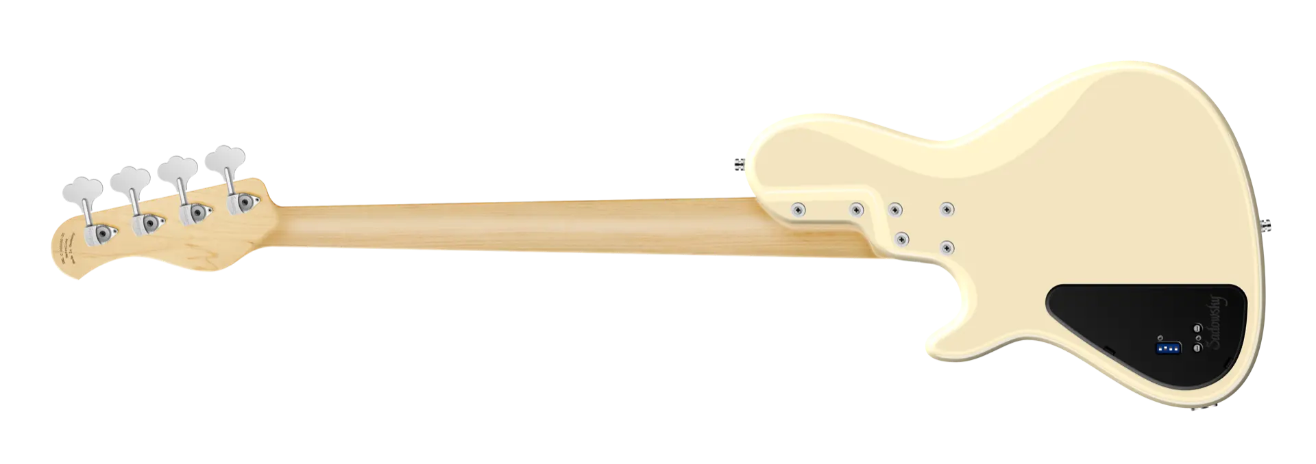 Der Sadowsky MetroLine 24-Fret Vintage Single Cut 4-saitiger Bass verfügt über einen schlanken, unterdimensionierten Korpus im Single-Cut-Stil aus amerikanischer Sumpfesche (chambered) mit einer Solid Olympic White High Polish-Lackierung. Der Hals ist aus amerikanischem Ahorn gefertigt und hat ein amerikanisches Ahorn Griffbrett. Zu den besonderen Merkmalen dieses Basses gehören Sadowsky J-Style Pickups sowie Rogers berühmte Elektronik mit einem Preamp mit schaltbarem Mid-Boost und Trim-Poti (wahlweise 500 oder 800 Hz, schmal- oder breitbandig), Vintage Tone Control und einem Preamp Bypass. Zu den Reglern gehören Volume, Balance, VTC (P/P), Treble und Bass. Die Hardware umfasst eine Sadowsky Quick String Release Bridge und leichte, offene Sadowsky Mechaniken. Ein Sadowsky MetroLine 24-Fret Vintage Single Cut Bass wird ausschließlich in Deutschland hergestellt und wiegt nie mehr als 4,0 kg. Er ist eine gute Wahl für Spieler, die einen leichten Single-Cut-Bass mit dem berühmten Sadowsky Sound suchen: ein starker, kraftvoller Bass, der nie matschig ist. Mitten, die präsent, aber nicht zu aggressiv sind, und ein süßer und luftiger Höhenbereich.
