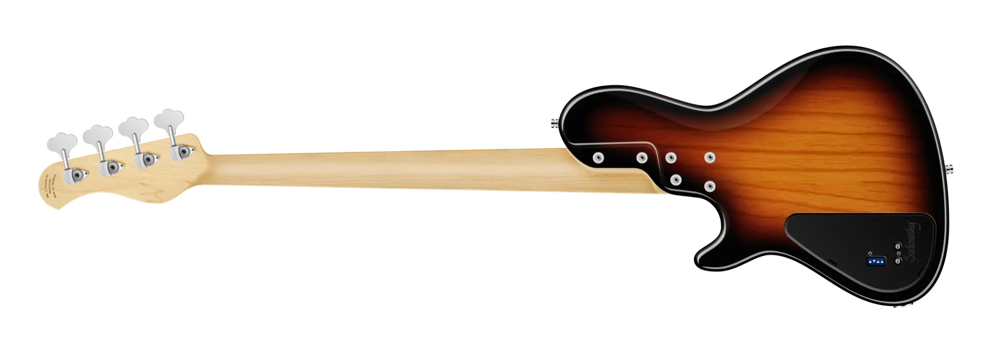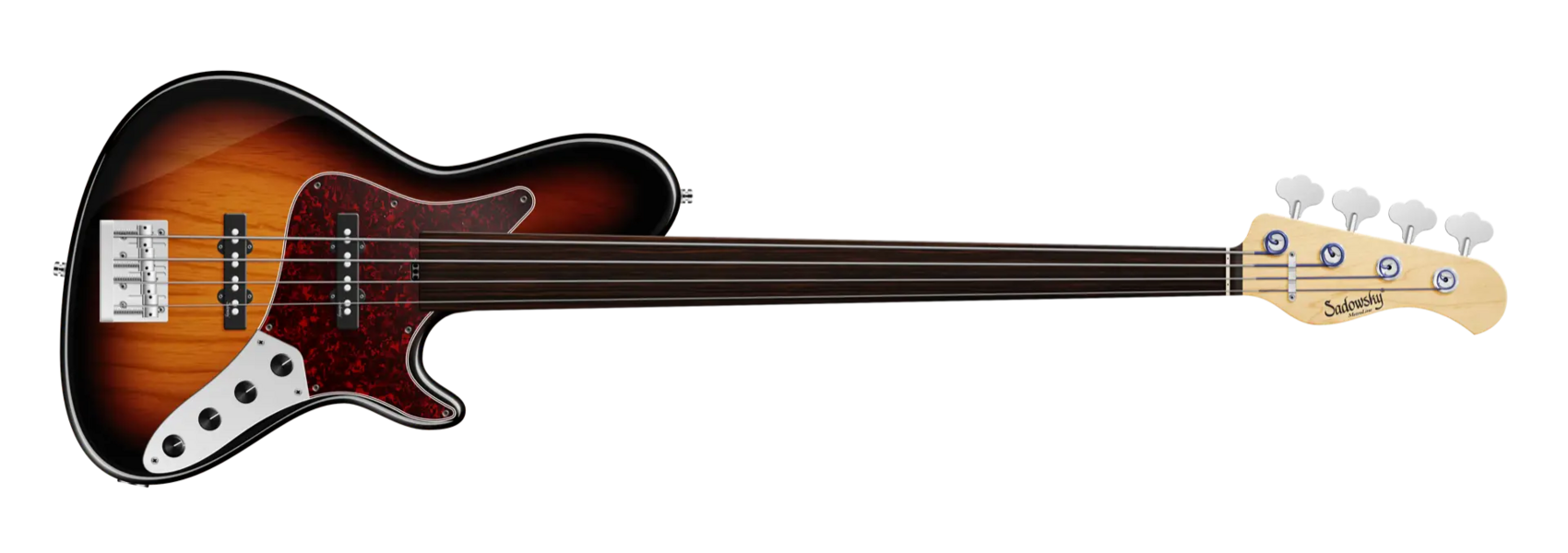 Der Sadowsky MetroLine 24-Fret Vintage Single Cut 4-saitiger Fretless-Bass verfügt über einen schlanken, unterdimensionierten Korpus im Single-Cut-Stil aus amerikanischer Sumpfesche (chambered) mit einer '59 Burst Transparent High Polish-Lackierung. Der Hals ist aus amerikanischem Ahorn gefertigt und mit einem Tigerstripe Ebony Griffbrett ausgestattet. Zu den besonderen Merkmalen dieses Basses gehören Sadowsky J-Style Pickups sowie Rogers berühmte Elektronik mit einem Preamp mit schaltbarem Mid-Boost und Trim-Poti (wahlweise 500 oder 800 Hz, schmal- oder breitbandig), Vintage Tone Control und einem Preamp Bypass. Zu den Reglern gehören Volume, Balance, VTC (P/P), Treble und Bass. Die Hardware umfasst eine Sadowsky Quick String Release Bridge und leichte, offene Sadowsky Mechaniken. Ein Sadowsky MetroLine 24-Fret Vintage Single Cut Bass wird ausschließlich in Deutschland hergestellt und wiegt nie mehr als 4,0 kg. Er ist eine gute Wahl für Spieler, die einen leichten Single-Cut-Bass mit dem berühmten Sadowsky Sound suchen: ein starker, kraftvoller Bass, der nie matschig ist. Mitten, die präsent, aber nicht zu aggressiv sind, und ein süßer und luftiger Höhenbereich.