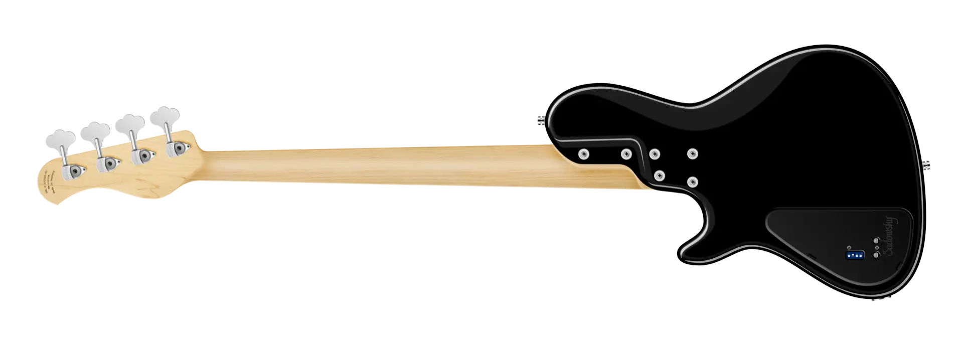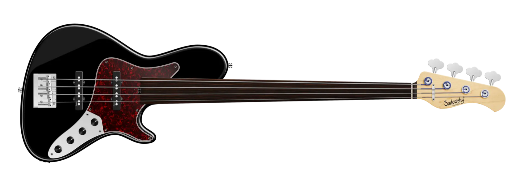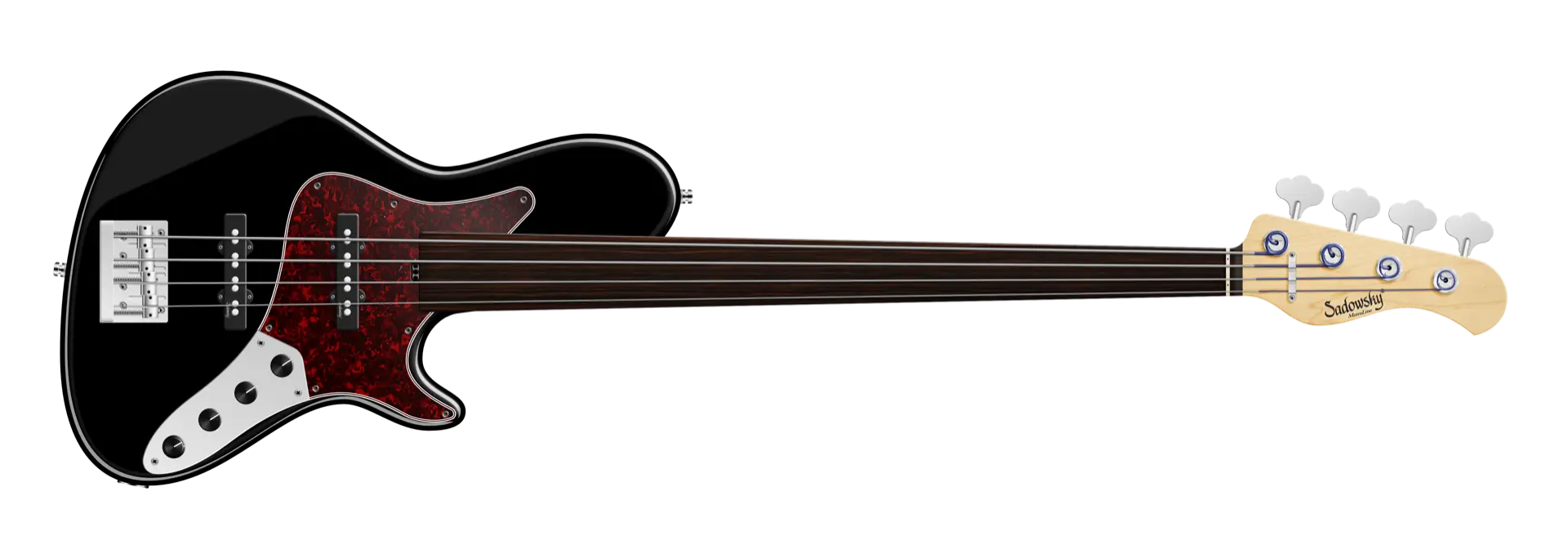 Der Sadowsky MetroLine 24-Fret Vintage Single Cut 4-saitiger Fretless-Bass verfügt über einen schlanken, unterdimensionierten Korpus im Single-Cut-Stil aus amerikanischer Sumpfesche (chambered) mit einer Solid Black High Polish-Lackierung. Der Hals ist aus amerikanischem Ahorn gefertigt und mit einem Tigerstripe Ebony Griffbrett ausgestattet. Zu den besonderen Merkmalen dieses Basses gehören Sadowsky J-Style Pickups sowie Rogers berühmte Elektronik mit einem Preamp mit schaltbarem Mid-Boost und Trim-Poti (wahlweise 500 oder 800 Hz, schmal- oder breitbandig), Vintage Tone Control und einem Preamp Bypass. Zu den Reglern gehören Volume, Balance, VTC (P/P), Treble und Bass. Die Hardware umfasst eine Sadowsky Quick String Release Bridge und leichte, offene Sadowsky Mechaniken. Ein Sadowsky MetroLine 24-Fret Vintage Single Cut Bass wird ausschließlich in Deutschland hergestellt und wiegt nie mehr als 4,0 kg. Er ist eine gute Wahl für Spieler, die einen leichten Single-Cut-Bass mit dem berühmten Sadowsky Sound suchen: ein starker, kraftvoller Bass, der nie matschig ist. Mitten, die präsent, aber nicht zu aggressiv sind, und ein süßer und luftiger Höhenbereich.