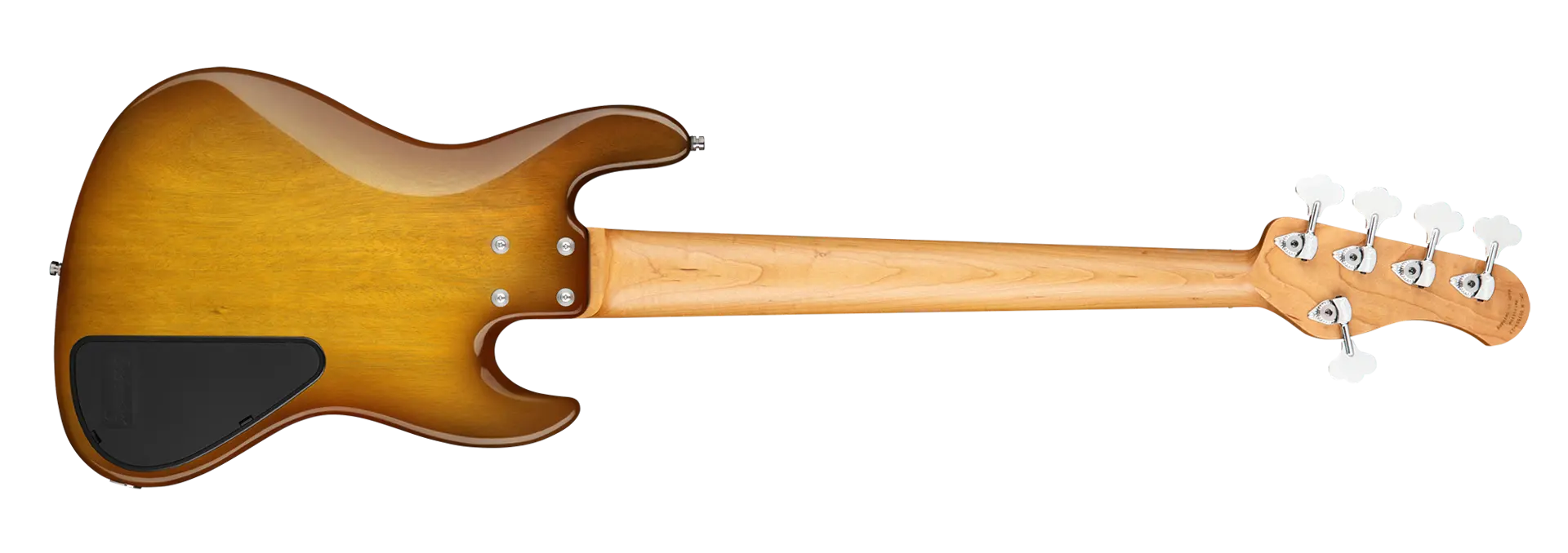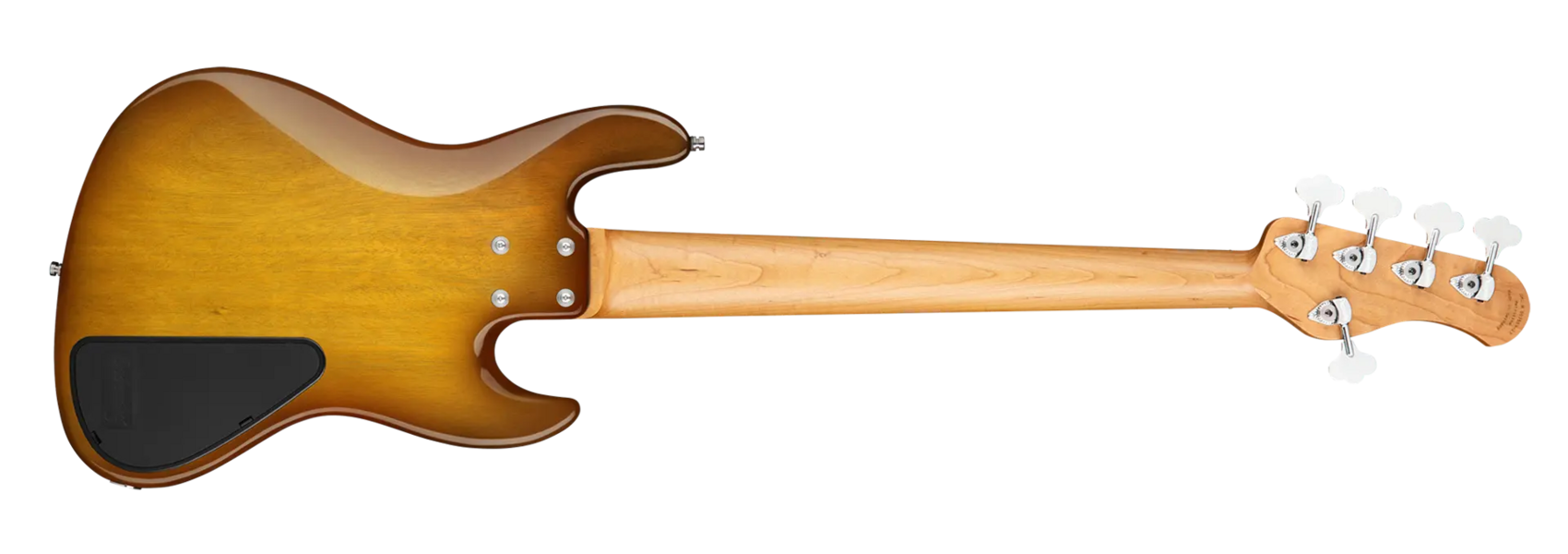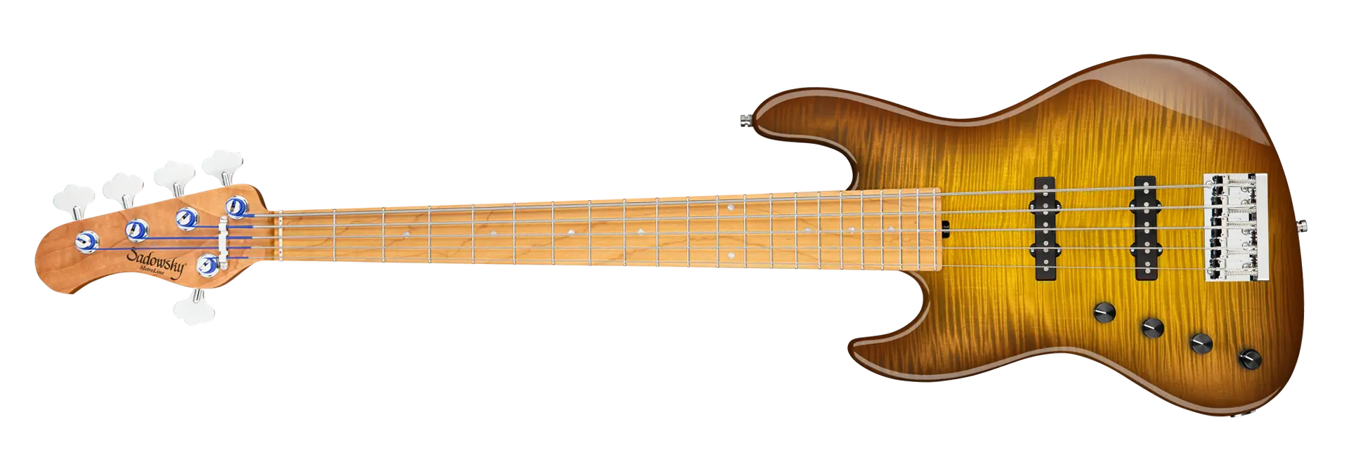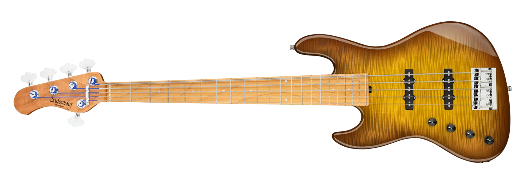 Der Sadowsky MetroLine Deluxe 21-Fret Standard J/J Bass bringt einen neuen Aspekt zu einem bereits fantastischen Sadowsky Bass: einen leichten Okoume Holzkörper mit einer wunderschönen geflammten Ahorndecke und einem gerösteten Ahornhals. Dieser Bass sieht nicht nur fantastisch aus, er spielt sich auch wunderbar! Klanglich sorgt die berühmte Sadowsky-Elektronik für den speziellen Sadowsky-Sound: Niemals harsch oder schrill klingend, mit starken, kraftvollen (aber niemals matschigen!) Bässen, Mitten, die präsent, aber nicht zu aggressiv sind, und einem süßen und luftigen Höhenbereich. Diese 5-saitige Linkshänder-Version hat eine schlanke, unterdimensionierte J-Korpusform (chambered) und ist mit einem Caramel Burst Transparent High Polish Finish versehen. Der Hals aus geröstetem amerikanischen Ahorn ist mit einem Griffbrett aus geröstetem amerikanischen Ahorn ausgestattet. Zu den besonderen Merkmalen dieses Basses gehören zwei brummfreie Sadowsky J-Style-Tonabnehmer, eine aktive Elektronik mit True Bypass, Treble- und Bass-Boost und Vintage Tone Control. Außerdem verfügt er über leichte, offene Sadowsky-Mechaniken und eine Sadowsky Quick String Release Bridge. Dieser Bass wird ausschließlich in unserer Werkstatt in Deutschland hergestellt und wiegt nie mehr als 4,0 kg. Eine gute Wahl für Bassisten, die einen schönen und leichten Bass suchen, der einen modernen Bass-Sound bietet.