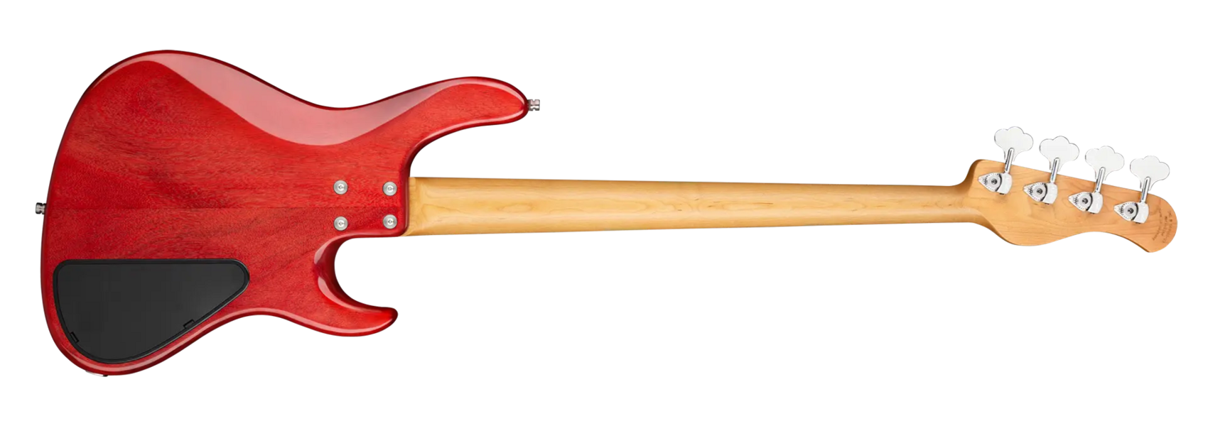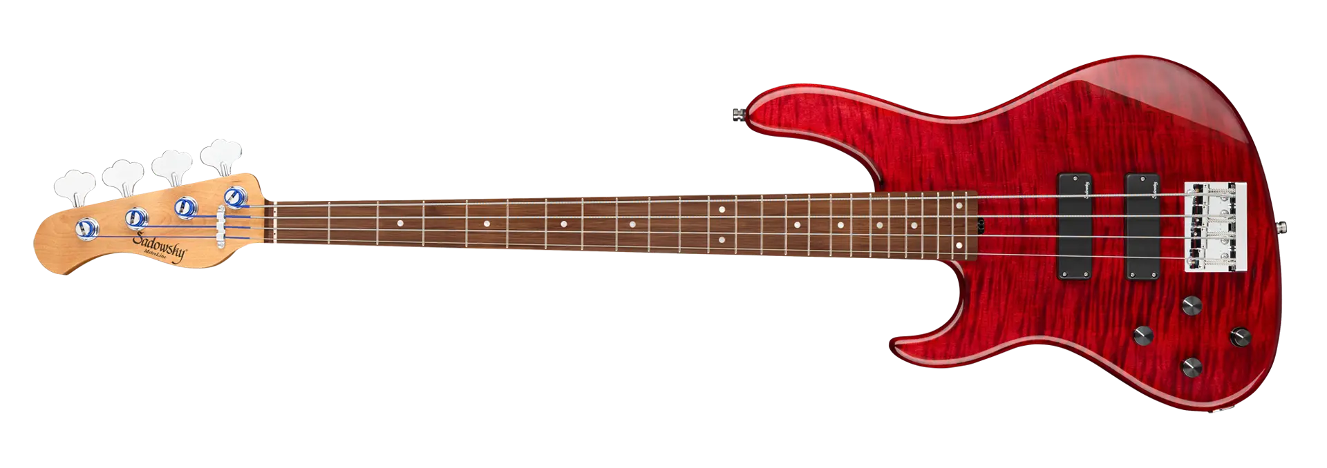 Der Sadowsky MetroLine Deluxe 24-Fret Modern Bass ist perfekt für alle Spieler, die einen Bass in moderner Optik und dem berühmten Sadowsky-Ton suchen: Niemals harsch oder schrill klingend, mit starken, kraftvollen, aber nie matschigen Bässen, mit präsenten, aber nicht zu aggressiven Mitten und einem süßen und luftigen Höhenbereich. Der 4-saitige Linkshänder-Bass hat einen Korpus aus Okoume (chambered). Hier in einer Burgundy Red Transparent High Polish-Lackierung zu sehen, ist die Korpusform schlank und unterdimensioniert mit tieferen Cutaways für bessere Bespielbarkeit und einen vollen Tonumfang von zwei Oktaven. Der Hals ist aus geröstetem amerikanischem Ahorn gefertigt und hat ein Morado (Pau Ferro) Griffbrett mit 24 Neusilberbünden. Dieser Bass ist mit zwei passiven Sadowsky Soapbar-Tonabnehmern ausgestattet, beide in moderner Position, und verfügt über eine aktive Elektronik, die True Bypass, Vintage Tone Control sowie Treble- und Bass-Boost bietet. Die Hardware umfasst Sadowsky Light Open Gear Mechaniken und eine Sadowsky Quick String Release Brücke. Jeder Sadowsky MetroLine Deluxe 24-Fret Modern Bass wird ausschließlich in unserer Werkstatt in Deutschland gefertigt und wiegt nicht mehr als 4,0 kg. Eine gute Wahl für Bassisten, die auf der Suche nach einem leichten, modern aussehenden Bass mit dem speziellen modernen Sadowsky-Sound sind.