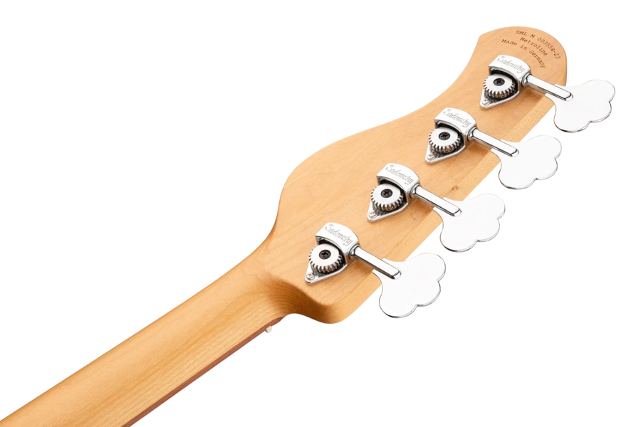 Der Sadowsky MetroLine Deluxe 24-Fret Modern Bass ist perfekt für alle Spieler, die einen Bass in moderner Optik und dem berühmten Sadowsky-Ton suchen: Niemals harsch oder schrill klingend, mit starken, kraftvollen, aber nie matschigen Bässen, mit präsenten, aber nicht zu aggressiven Mitten und einem süßen und luftigen Höhenbereich. Der 4-saitige Bass hat einen Korpus aus Okoume (chambered). Hier in einer Vintage Tinted Natural Transparent Satin-Lackierung zu sehen, ist die Korpusform schlank und unterdimensioniert mit tieferen Cutaways für bessere Bespielbarkeit und einen vollen Tonumfang von zwei Oktaven. Der Hals ist aus geröstetem amerikanischem Ahorn gefertigt und hat ein Morado (Pau Ferro) Griffbrett mit 24 Neusilberbünden. Dieser Bass ist mit zwei passiven Sadowsky Soapbar-Tonabnehmern ausgestattet, beide in moderner Position, und verfügt über eine aktive Elektronik, die True Bypass, Vintage Tone Control sowie Treble- und Bass-Boost bietet. Die Hardware umfasst Sadowsky Light Open Gear Mechaniken und eine Sadowsky Quick String Release Brücke. Jeder Sadowsky MetroLine Deluxe 24-Fret Modern Bass wird ausschließlich in unserer Werkstatt in Deutschland gefertigt und wiegt nicht mehr als 4,0 kg. Eine gute Wahl für Bassisten, die auf der Suche nach einem leichten, modern aussehenden Bass mit dem speziellen modernen Sadowsky-Sound sind.