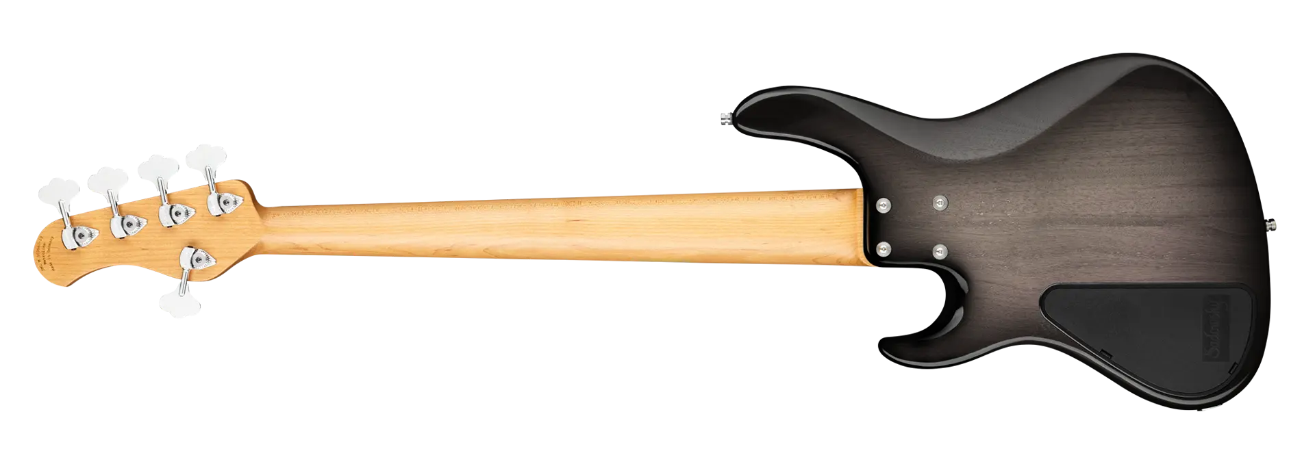 Der Sadowsky MetroLine Deluxe 24-Fret Modern Bass ist perfekt für alle Spieler, die einen Bass in moderner Optik und dem berühmten Sadowsky-Ton suchen: Niemals harsch oder schrill klingend, mit starken, kraftvollen, aber nie matschigen Bässen, mit präsenten, aber nicht zu aggressiven Mitten und einem süßen und luftigen Höhenbereich. Der 5-saitige Bass hat einen Korpus aus Okoume (chambered). Hier in einer Black Burst Transparent High Polish-Lackierung zu sehen, ist die Korpusform schlank und unterdimensioniert mit tieferen Cutaways für bessere Bespielbarkeit und einen vollen Tonumfang von zwei Oktaven. Der Hals ist aus geröstetem amerikanischem Ahorn gefertigt und hat ein Morado (Pau Ferro) Griffbrett mit 24 Neusilberbünden. Dieser Bass ist mit zwei passiven Sadowsky Soapbar-Tonabnehmern ausgestattet, beide in moderner Position, und verfügt über eine aktive Elektronik, die True Bypass, Vintage Tone Control sowie Treble- und Bass-Boost bietet. Die Hardware umfasst Sadowsky Light Open Gear Mechaniken und eine Sadowsky Quick String Release Brücke. Jeder Sadowsky MetroLine Deluxe 24-Fret Modern Bass wird ausschließlich in unserer Werkstatt in Deutschland gefertigt und wiegt nicht mehr als 4,0 kg. Eine gute Wahl für Bassisten, die auf der Suche nach einem leichten, modern aussehenden Bass mit dem speziellen modernen Sadowsky-Sound sind.