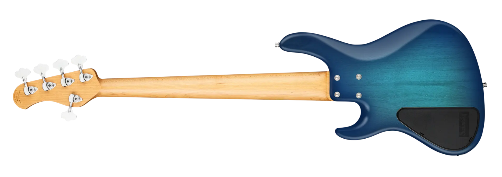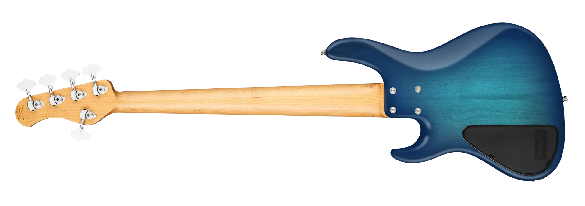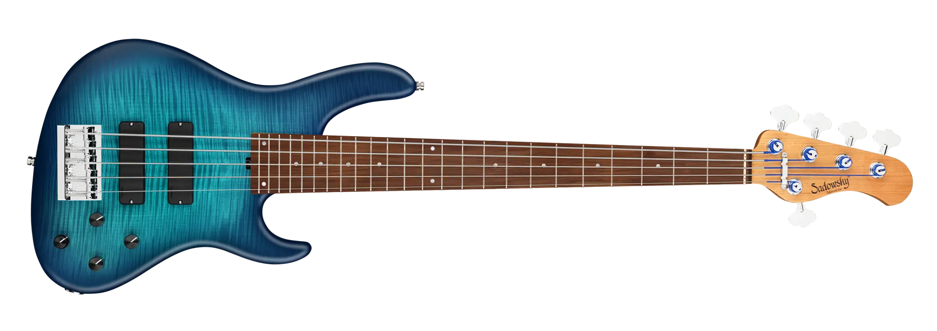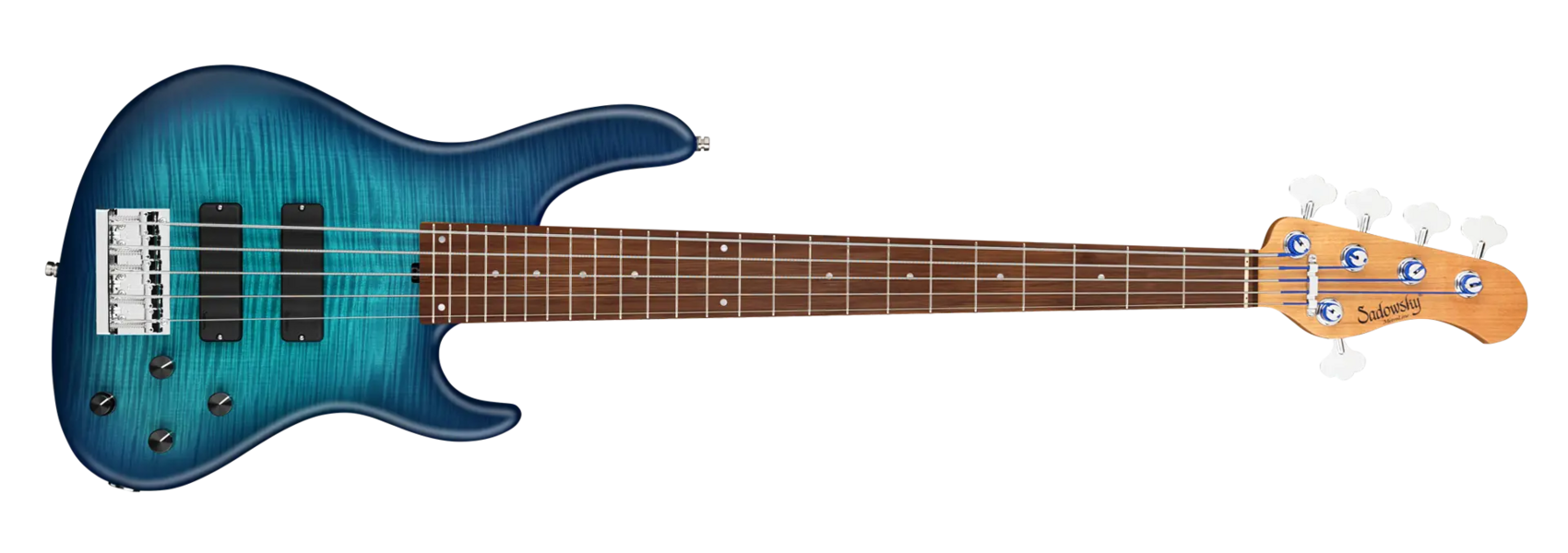 Der Sadowsky MetroLine Deluxe 24-Fret Modern Bass ist perfekt für alle Spieler, die einen Bass in moderner Optik und dem berühmten Sadowsky-Ton suchen: Niemals harsch oder schrill klingend, mit starken, kraftvollen, aber nie matschigen Bässen, mit präsenten, aber nicht zu aggressiven Mitten und einem süßen und luftigen Höhenbereich. Der 5-saitige Bass hat einen Korpus aus Okoume (chambered). Hier in einer Bora Blue Burst Transparent Satin-Lackierung zu sehen, ist die Korpusform schlank und unterdimensioniert mit tieferen Cutaways für bessere Bespielbarkeit und einen vollen Tonumfang von zwei Oktaven. Der Hals ist aus geröstetem amerikanischem Ahorn gefertigt und hat ein Morado (Pau Ferro) Griffbrett mit 24 Neusilberbünden. Dieser Bass ist mit zwei passiven Sadowsky Soapbar-Tonabnehmern ausgestattet, beide in moderner Position, und verfügt über eine aktive Elektronik, die True Bypass, Vintage Tone Control sowie Treble- und Bass-Boost bietet. Die Hardware umfasst Sadowsky Light Open Gear Mechaniken und eine Sadowsky Quick String Release Brücke. Jeder Sadowsky MetroLine Deluxe 24-Fret Modern Bass wird ausschließlich in unserer Werkstatt in Deutschland gefertigt und wiegt nicht mehr als 4,0 kg. Eine gute Wahl für Bassisten, die auf der Suche nach einem leichten, modern aussehenden Bass mit dem speziellen modernen Sadowsky-Sound sind.
