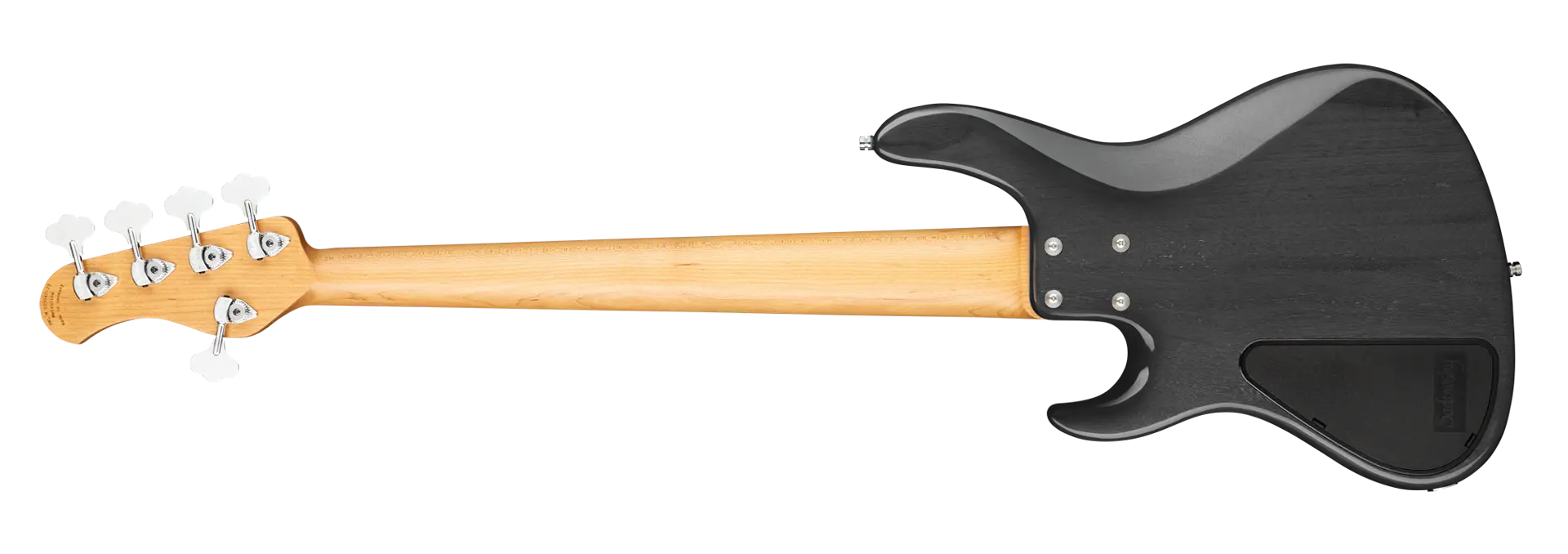 Der Sadowsky MetroLine Deluxe 24-Fret Modern Bass ist perfekt für alle Spieler, die einen Bass in moderner Optik und dem berühmten Sadowsky-Ton suchen: Niemals harsch oder schrill klingend, mit starken, kraftvollen, aber nie matschigen Bässen, mit präsenten, aber nicht zu aggressiven Mitten und einem süßen und luftigen Höhenbereich. Der 5-saitige Bass hat einen Korpus aus Okoume (chambered). Hier in einer Nirvana Black Transparent High Polish-Lackierung zu sehen, ist die Korpusform schlank und unterdimensioniert mit tieferen Cutaways für bessere Bespielbarkeit und einen vollen Tonumfang von zwei Oktaven. Der Hals ist aus geröstetem amerikanischem Ahorn gefertigt und hat ein Morado (Pau Ferro) Griffbrett mit 24 Neusilberbünden. Dieser Bass ist mit zwei passiven Sadowsky Soapbar-Tonabnehmern ausgestattet, beide in moderner Position, und verfügt über eine aktive Elektronik, die True Bypass, Vintage Tone Control sowie Treble- und Bass-Boost bietet. Die Hardware umfasst Sadowsky Light Open Gear Mechaniken und eine Sadowsky Quick String Release Brücke. Jeder Sadowsky MetroLine Deluxe 24-Fret Modern Bass wird ausschließlich in unserer Werkstatt in Deutschland gefertigt und wiegt nicht mehr als 4,0 kg. Eine gute Wahl für Bassisten, die auf der Suche nach einem leichten, modern aussehenden Bass mit dem speziellen modernen Sadowsky-Sound sind.