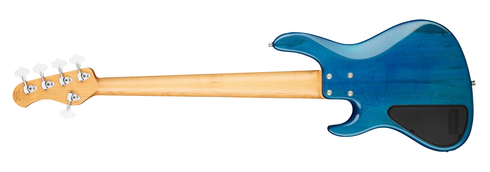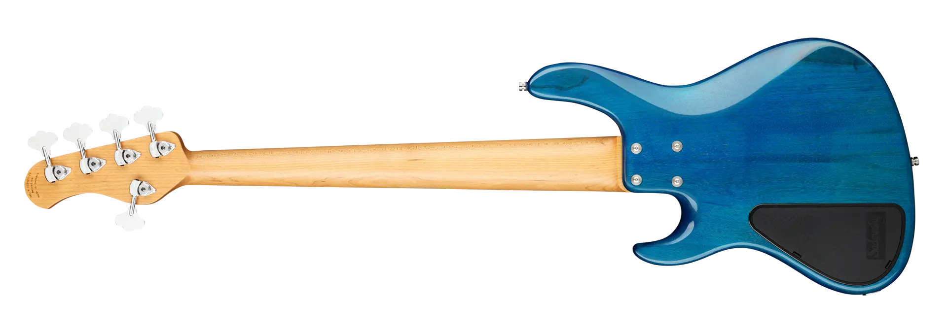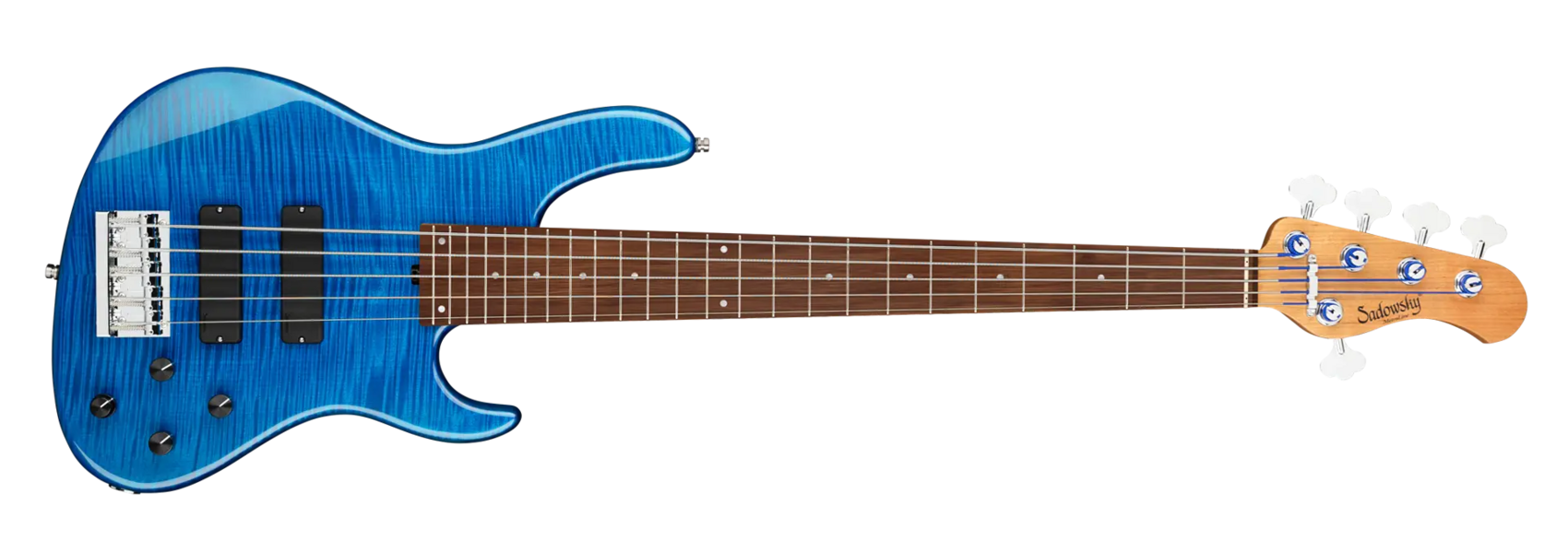 Der Sadowsky MetroLine Deluxe 24-Fret Modern Bass ist perfekt für alle Spieler, die einen Bass in moderner Optik und dem berühmten Sadowsky-Ton suchen: Niemals harsch oder schrill klingend, mit starken, kraftvollen, aber nie matschigen Bässen, mit präsenten, aber nicht zu aggressiven Mitten und einem süßen und luftigen Höhenbereich. Der 5-saitige Bass hat einen Korpus aus Okoume (chambered). Hier in einer Ocean Blue Transparent High Polish-Lackierung zu sehen, ist die Korpusform schlank und unterdimensioniert mit tieferen Cutaways für bessere Bespielbarkeit und einen vollen Tonumfang von zwei Oktaven. Der Hals ist aus geröstetem amerikanischem Ahorn gefertigt und hat ein Morado (Pau Ferro) Griffbrett mit 24 Neusilberbünden. Dieser Bass ist mit zwei passiven Sadowsky Soapbar-Tonabnehmern ausgestattet, beide in moderner Position, und verfügt über eine aktive Elektronik, die True Bypass, Vintage Tone Control sowie Treble- und Bass-Boost bietet. Die Hardware umfasst Sadowsky Light Open Gear Mechaniken und eine Sadowsky Quick String Release Brücke. Jeder Sadowsky MetroLine Deluxe 24-Fret Modern Bass wird ausschließlich in unserer Werkstatt in Deutschland gefertigt und wiegt nicht mehr als 4,0 kg. Eine gute Wahl für Bassisten, die auf der Suche nach einem leichten, modern aussehenden Bass mit dem speziellen modernen Sadowsky-Sound sind.