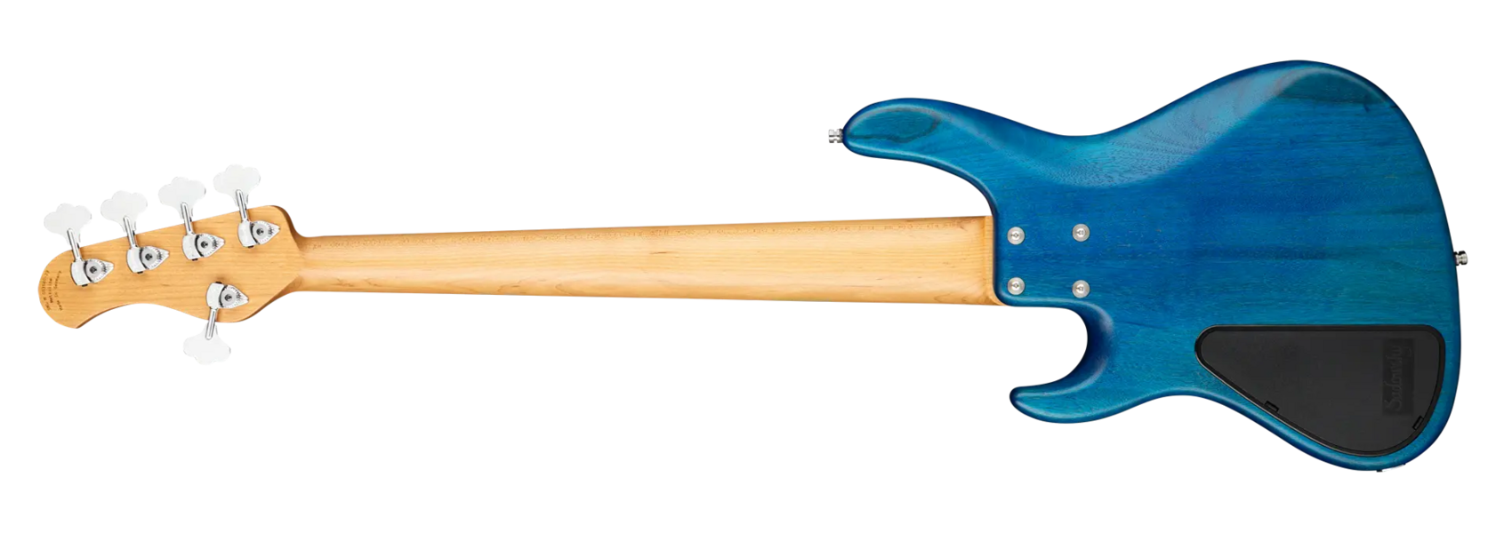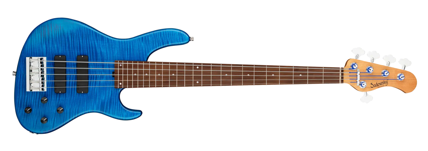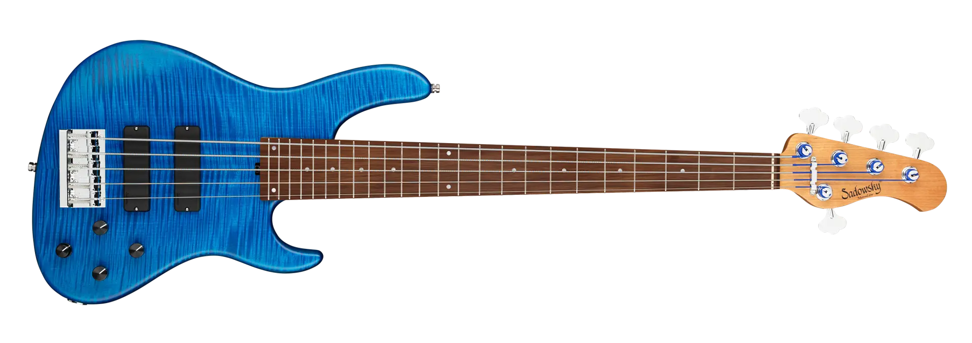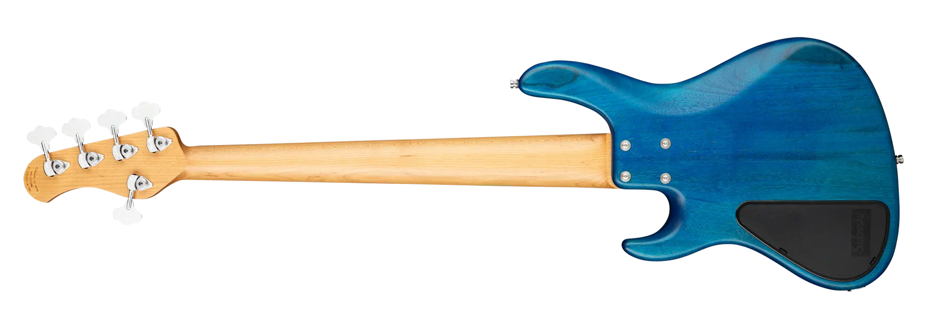 Der Sadowsky MetroLine Deluxe 24-Fret Modern Bass ist perfekt für alle Spieler, die einen Bass in moderner Optik und dem berühmten Sadowsky-Ton suchen: Niemals harsch oder schrill klingend, mit starken, kraftvollen, aber nie matschigen Bässen, mit präsenten, aber nicht zu aggressiven Mitten und einem süßen und luftigen Höhenbereich. Der 5-saitige Bass hat einen Korpus aus Okoume (chambered). Hier in einer Ocean Blue Transparent Satin-Lackierung zu sehen, ist die Korpusform schlank und unterdimensioniert mit tieferen Cutaways für bessere Bespielbarkeit und einen vollen Tonumfang von zwei Oktaven. Der Hals ist aus geröstetem amerikanischem Ahorn gefertigt und hat ein Morado (Pau Ferro) Griffbrett mit 24 Neusilberbünden. Dieser Bass ist mit zwei passiven Sadowsky Soapbar-Tonabnehmern ausgestattet, beide in moderner Position, und verfügt über eine aktive Elektronik, die True Bypass, Vintage Tone Control sowie Treble- und Bass-Boost bietet. Die Hardware umfasst Sadowsky Light Open Gear Mechaniken und eine Sadowsky Quick String Release Brücke. Jeder Sadowsky MetroLine Deluxe 24-Fret Modern Bass wird ausschließlich in unserer Werkstatt in Deutschland gefertigt und wiegt nicht mehr als 4,0 kg. Eine gute Wahl für Bassisten, die auf der Suche nach einem leichten, modern aussehenden Bass mit dem speziellen modernen Sadowsky-Sound sind.