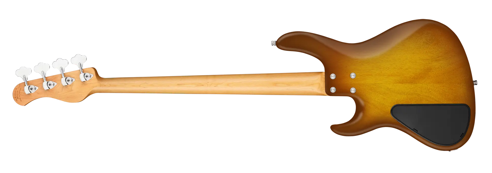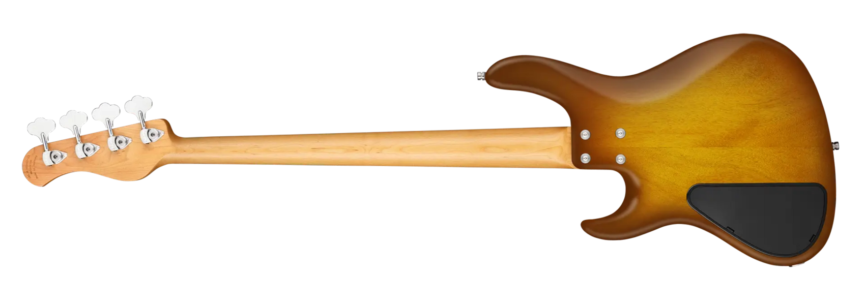 Der Sadowsky MetroLine Deluxe 24-Fret Modern Bass ist perfekt für alle Spieler, die einen Bass in moderner Optik und dem berühmten Sadowsky-Ton suchen: Niemals harsch oder schrill klingend, mit starken, kraftvollen, aber nie matschigen Bässen, mit präsenten, aber nicht zu aggressiven Mitten und einem süßen und luftigen Höhenbereich. Der 4-saitige Bass hat einen Korpus aus Okoume (chambered). Hier in einer Caramel Burst Transparent Satin-Lackierung zu sehen, ist die Korpusform schlank und unterdimensioniert mit tieferen Cutaways für bessere Bespielbarkeit und einen vollen Tonumfang von zwei Oktaven. Der Hals ist aus geröstetem amerikanischem Ahorn gefertigt und hat ein geröstetes amerikanisches Ahorn Griffbrett mit 24 Neusilberbünden. Dieser Bass ist mit zwei passiven Sadowsky Soapbar-Tonabnehmern ausgestattet, beide in moderner Position, und verfügt über eine aktive Elektronik, die True Bypass, Vintage Tone Control sowie Treble- und Bass-Boost bietet. Die Hardware umfasst Sadowsky Light Open Gear Mechaniken und eine Sadowsky Quick String Release Brücke. Jeder Sadowsky MetroLine Deluxe 24-Fret Modern Bass wird ausschließlich in unserer Werkstatt in Deutschland gefertigt und wiegt nicht mehr als 4,0 kg. Eine gute Wahl für Bassisten, die auf der Suche nach einem leichten, modern aussehenden Bass mit dem speziellen modernen Sadowsky-Sound sind.