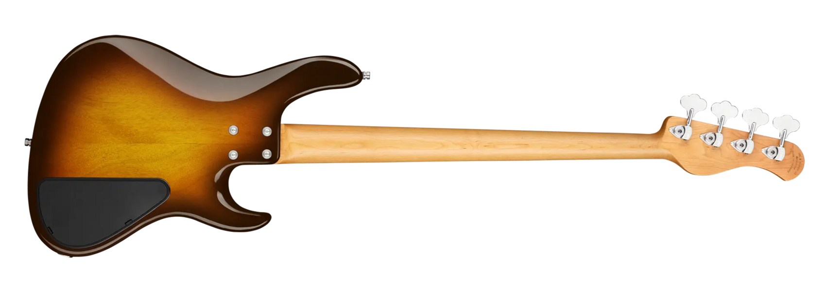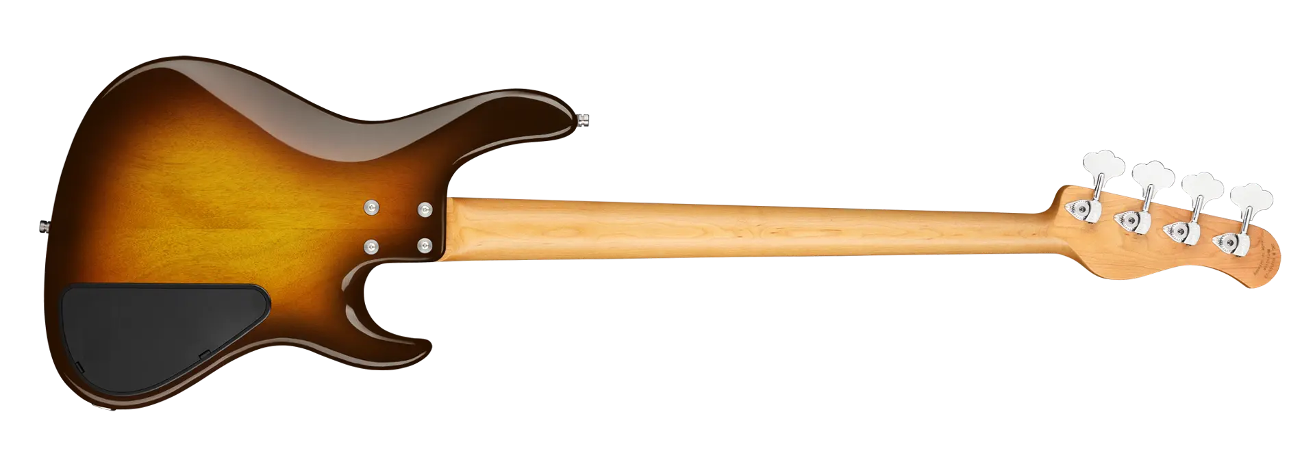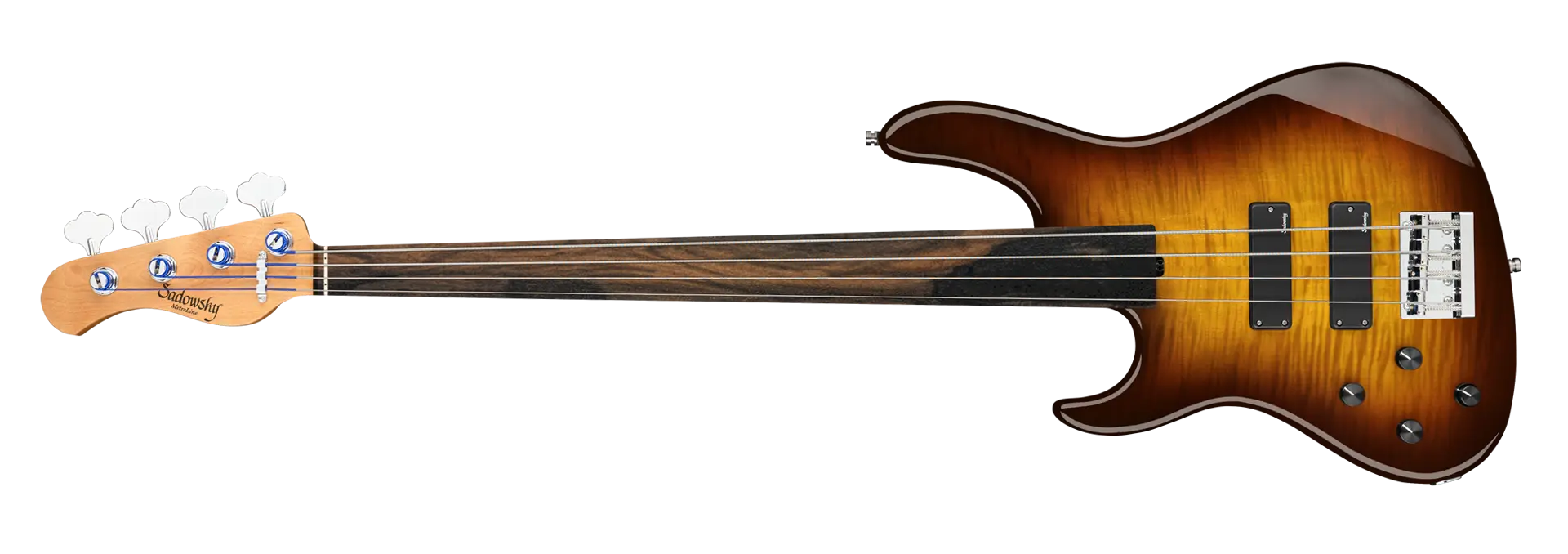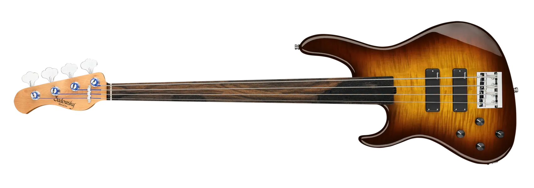 Der Sadowsky MetroLine Deluxe 24-Fret Modern Bass ist perfekt für alle Spieler, die einen Bass in moderner Optik und dem berühmten Sadowsky-Ton suchen: Niemals harsch oder schrill klingend, mit starken, kraftvollen, aber nie matschigen Bässen, mit präsenten, aber nicht zu aggressiven Mitten und einem süßen und luftigen Höhenbereich. Der 4-saitige Fretless Linkshänder-Bass hat einen Korpus aus Okoume (chambered). Hier in einer '59 Burst Transparent High Polish-Lackierung zu sehen, ist die Korpusform schlank und unterdimensioniert mit tieferen Cutaways für bessere Bespielbarkeit und einen vollen Tonumfang von zwei Oktaven. Der Hals ist aus geröstetem amerikanischem Ahorn gefertigt und hat ein Tigerstripe Ebony Griffbrett. Dieser Bass ist mit zwei passiven Sadowsky Soapbar-Tonabnehmern ausgestattet, beide in moderner Position, und verfügt über eine aktive Elektronik, die True Bypass, Vintage Tone Control sowie Treble- und Bass-Boost bietet. Die Hardware umfasst Sadowsky Light Open Gear Mechaniken und eine Sadowsky Quick String Release Brücke. Jeder Sadowsky MetroLine Deluxe 24-Fret Modern Bass wird ausschließlich in unserer Werkstatt in Deutschland gefertigt und wiegt nicht mehr als 4,0 kg. Eine gute Wahl für Bassisten, die auf der Suche nach einem leichten, modern aussehenden Bass mit dem speziellen modernen Sadowsky-Sound sind.