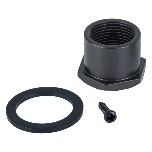 Diese einzelne Mechanik wird mit allen notwendigen Montagezubehörteilen geliefert: Befestigungsschraube, Unterlegscheibe und Montagehülse. Optisch passend bei übriger Hardware in Satin Black bzw. gleicher Farbgebung.