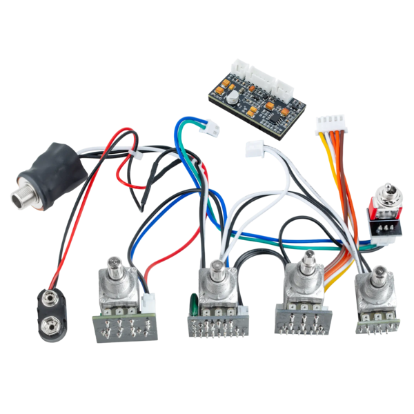 Der Sadowsky Onboard Bass Preamp (4-Knob System) ist ein vorverdrahtetes System, das die gleichen Regelmöglichkeiten und den legendären aktiven Vorverstärker wie alle Sadowsky-Bässe bietet. Der Preamp ist für die Installation in den meisten Bässen mit 4-Knob Layout ausgelegt. Bei neueren aktiven Modellen mit 4-Knob Layout mit einer seitlichen Ausgangsbuchse und einem Batteriefach sind normalerweise keine Änderungen erforderlich. Bei passiven Instrumenten besteht die einzige erforderliche Änderung darin, die Ausgangsbuchse zur Seite des Instruments zu verlegen und Platz für eine Batterie zu schaffen. Die Regelmöglichkeiten sind: Volume – Pan (Balance) – VTC (Vintage Tone Control) – Treble / Bass. Die Bass- und Höhen-Regler boosten ausschließlich - dreht man die Regler komplett nach links erhält man einen linearen Frequenzgang. Der VTC-Regler arbeitet passiv, die maximale Einstellung ist ein Flat-EQ. Je weiter man den Regler zurückdreht, desto stärker werden die Höhen im Signal gedämpft. Dieses System ist nicht mit aktiven Tonabnehmern kompatibel, die etwas anderes als einen 250K oder 500K Volume- oder Balance-Poti benötigen.