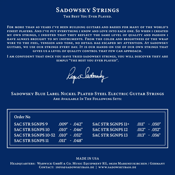 Sadowsky Blue Label Guitar String Set, Nickel Plated Steel - 011-048