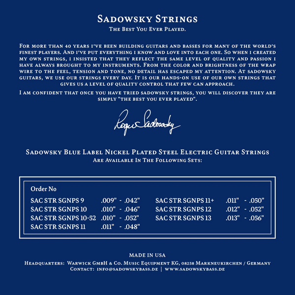 Sadowsky Blue Label Guitar String Set, Nickel Plated Steel - 013-056