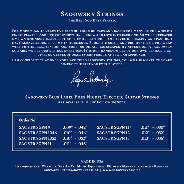 Sadowsky Blue Label Guitar String Set, Pure Nickel - 013-056