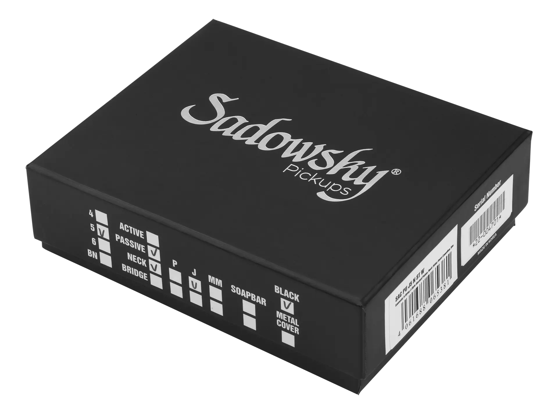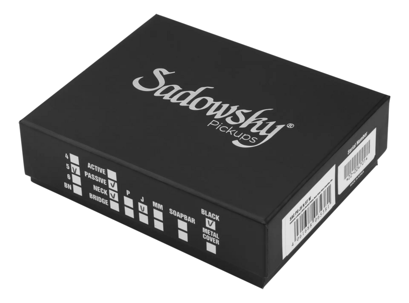 Sadowsky passiver J-Style Stacked Coil Wide Halstonabnehmer mit Brumm- und Rauschunterdrückung für 5-saitige Bässe. Zu den Merkmalen dieses breiten Tonabnehmers gehören ein abgeschirmtes, 2-adriges Anschlusskabel, Alnico V-Magnete, offene Pole Pieces und eine schwarze Soft-Touch-Abdeckung.